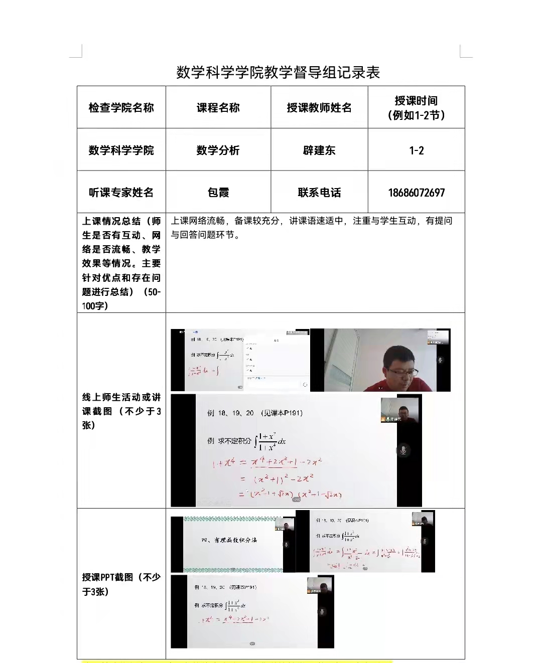 学院领导班子、教学委员会和督导组通过随机进入线上课程观看教师在线授课实况、查阅在线教学资源、了解学生在线学习互动等方式开展教学督导检查,并填写教学督导记录表,及时反馈督导检查情况。