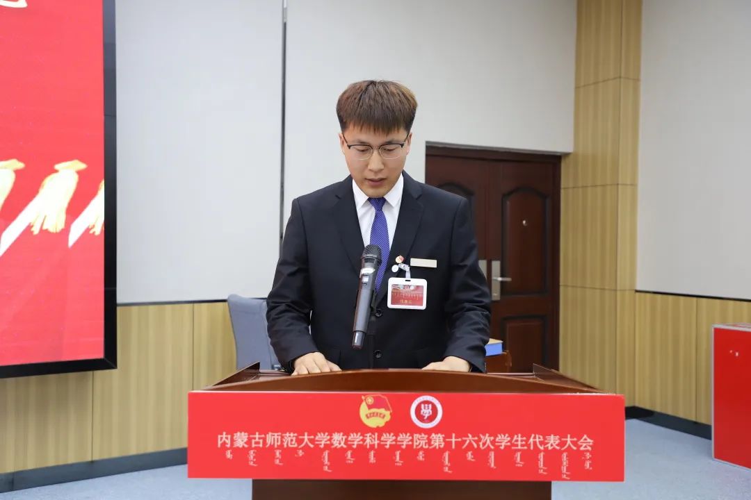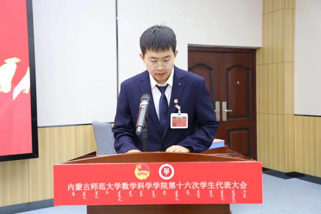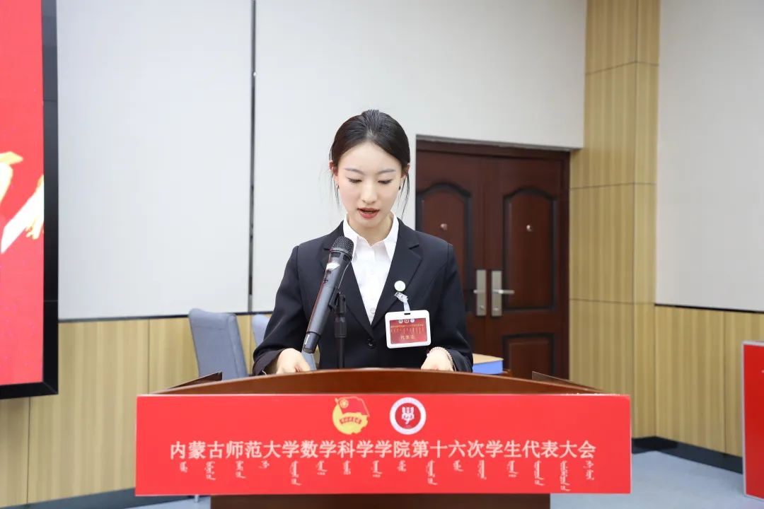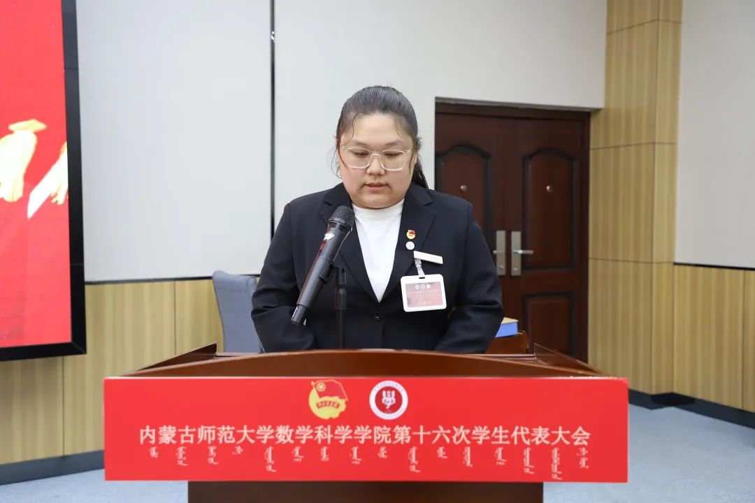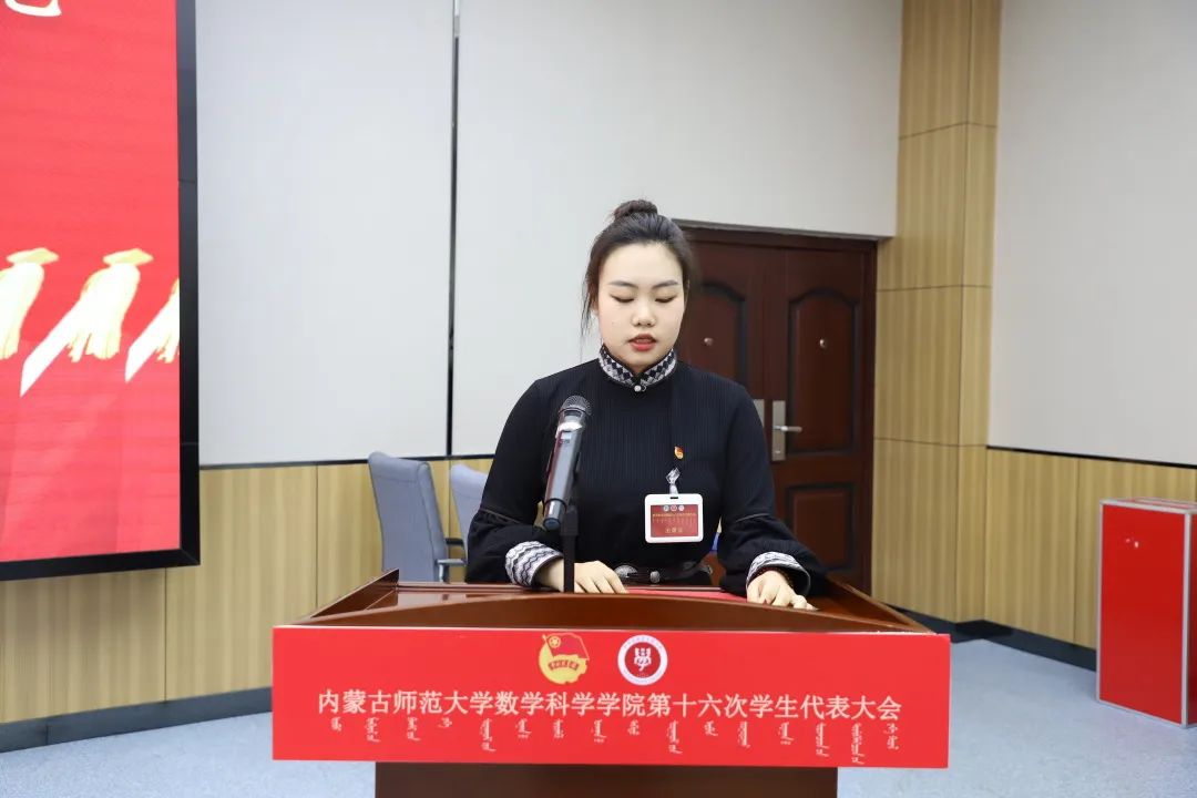大会第六项,郑瑞琪同学宣读《今年会第十六次学生代表大会代表资格审查委员会关于代表资格的审查报告》