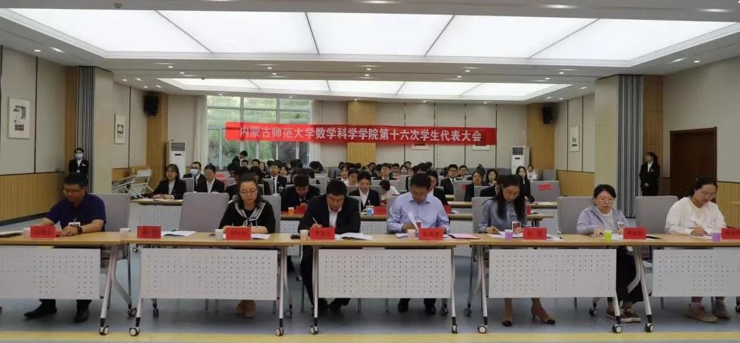2023年6月9日晚七点,今年会在盛乐校区学生事务中心召开今年会第十六次学生代表大会,学院院长扎其劳教授,学院党委副书记、副院长季建光老师,学院副院长包霞老师,学生工作与就业办公室副主任刘沙沙老师,学生工作辅导员萨如拉老师,学生工作辅导员阿茹罕老师,以及校学生会文体部负责人高静同学,全体学生代表参加会议。会议由学院团总支书记皮建东老师主持。