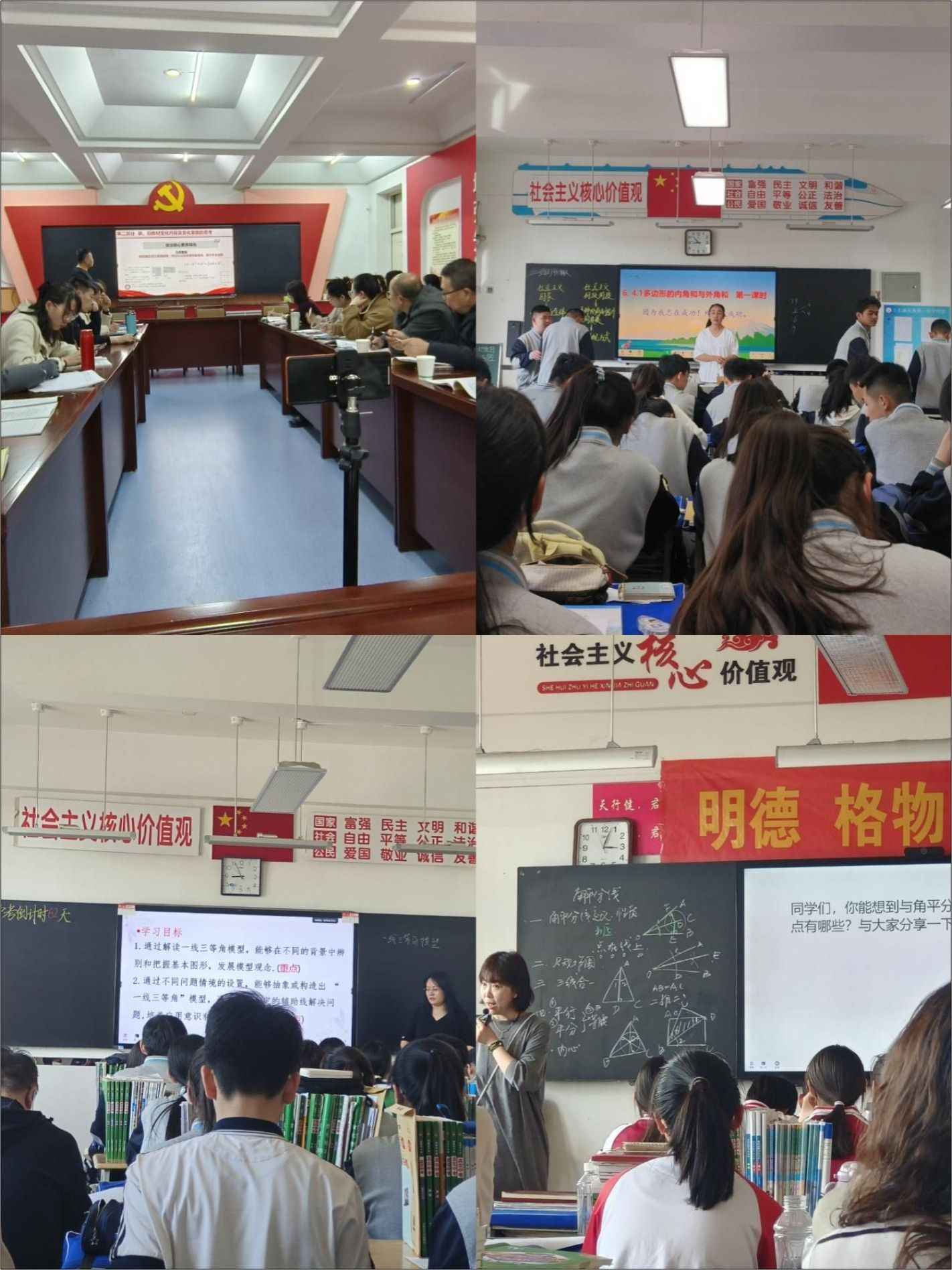 作为“小青教”,听课学习成了每天的必修课。第一次听苏老师讲数学课,她的课堂模式就深深吸引了我:课前提问靶向定位上节课知识点,迅速将学生拉进课堂;恰到好处的语调和停顿,吸引了学生的注意力;课堂练习分层设置,给学生小组讨论的机会,学习氛围浓厚……教研会上,老教师们讨论“如何让学生爱上函数”,连争论都带着对教学的认真。记得有次听外聘老师的角平分线模型示范课,她让学生上台当“小老师”,课堂气氛活跃得像炸开的爆米花。这些日子,我像块海绵,拼命吸收着前辈们的经验,听课笔记上渐渐写满了红笔批注。
