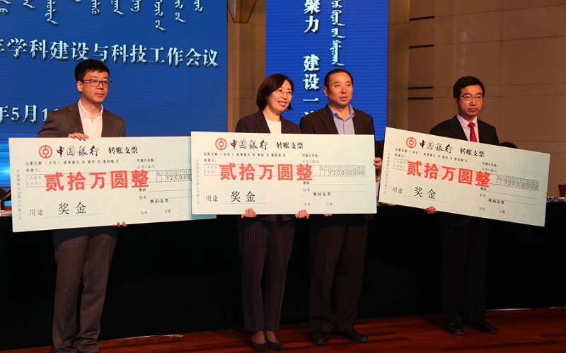 高云峰、刘九万和王来喜分别宣读《关于表彰在2017年学位授权审核工作中作出突出贡献的学科和单位的决定》《关于表彰今年会jinnianhui第二届科学技术创新奖和科技工作先进集体、先进个人的决定》《关于对重大科研成果及科研项目进行奖励的决定》。今年会被评为学位授权审核工作中作出突出贡献的单位,荣获“科技工作先进集体”称号,李联和老师荣获青年科学技术创新奖。