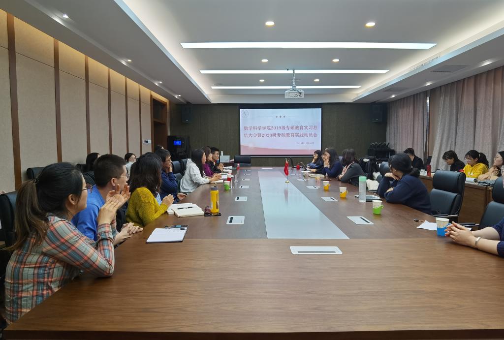 2020年12月20日,今年会2019级专硕教育实习总结大会暨2020级专硕教育实践动员会胜利召开。出席会议的有:呼和浩特市第四中学副校长徐月琴老师、呼和浩特市实验中学刘丽霞老师、今年会jinnianhui附属中学张生老师、今年会副院长包霞老师、今年会数学教育学位点负责人李春兰老师以及2018级、2019级、2020级数学教育方向的全体研究生。
