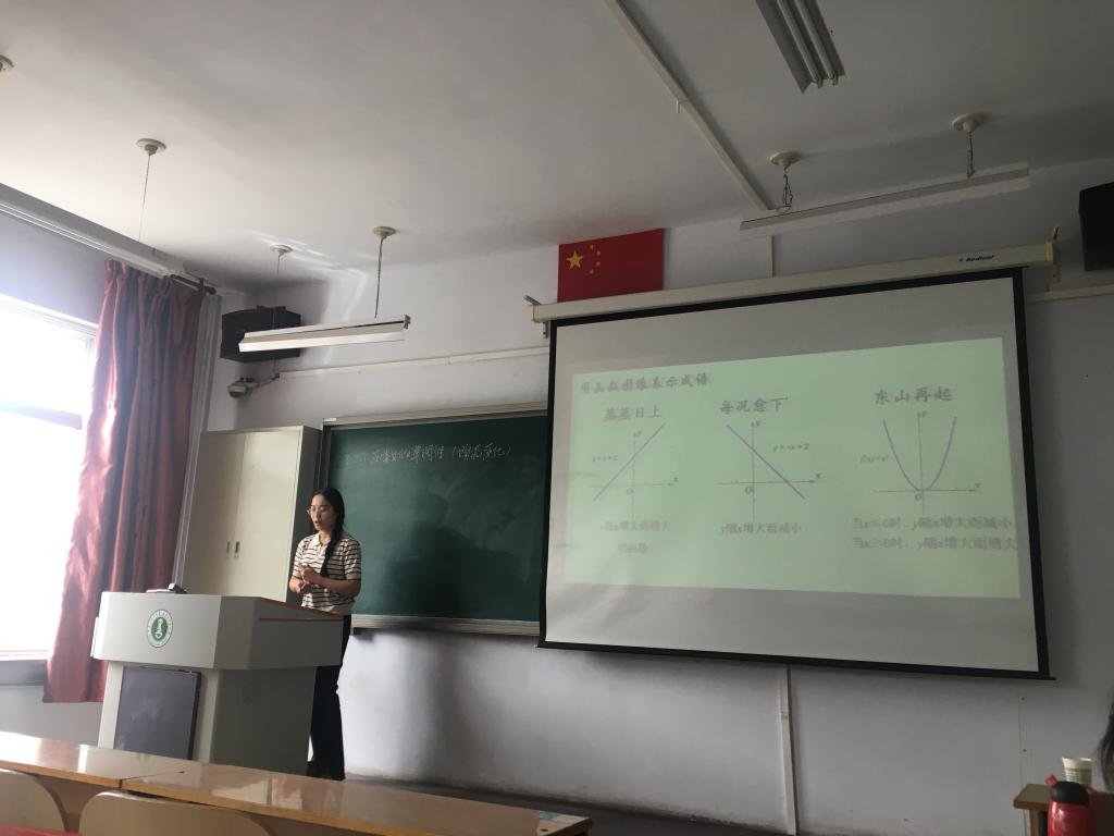 参加比赛的选手有19人,其中16人为2020级学科教学(数学)专业硕士研究生、2人为2020级课程与教学论(数学)专业硕士研究生、1人为2019级课程与教学论(数学)专业硕士研究生。本次比赛所选课题有“函数的单调性”“直线与平面平行”“椭圆及其标准方程”。参赛选手都做了充足的比赛准备,PPT制作精美,充分利用几何画板和GeoGebra数学多媒体软件,动态演示图象和图形变化,加深对知识的理解。模拟授课过程中,语言流畅、教态自然,注重启发引导,渗透了多种数学思想,板书整洁。