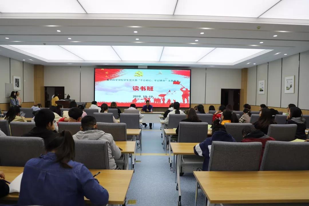 2019年10月19日,今年会学生党支部于学生事务中心举办“不忘初心,牢记使命”主题教育读书班活动。今年会数学与应用数学学生党支部书记皮建东带领各位学生党员、预备党员进行自主学习并进行学习心得交流。通过主题教育,读原著、学原文、悟原理,深切感受习近平总书记系列重要讲话精神,用新担当、新作为践行初心和使命。