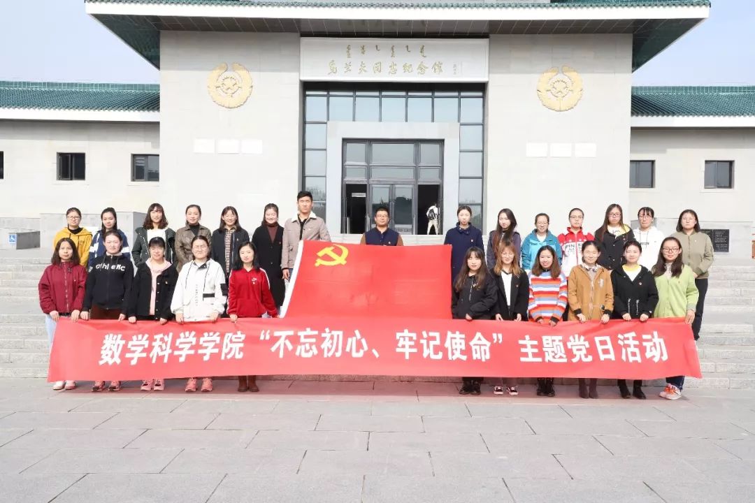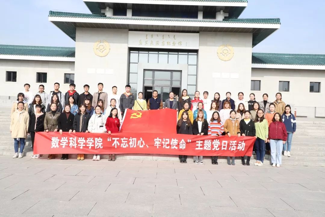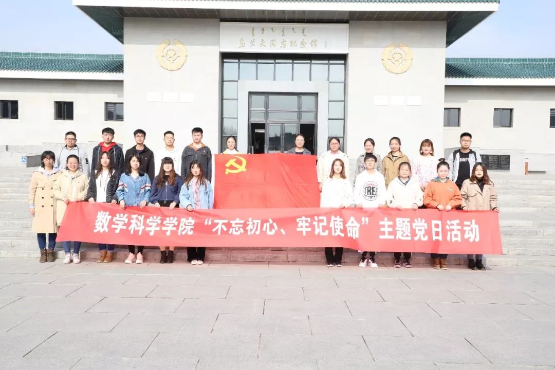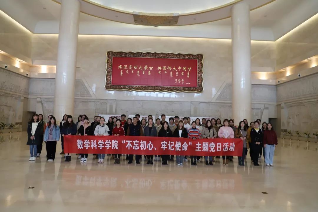 2019年10月19日,今年会数学与应用数学学生党支部、信息与计算科学学生党支部共同开展“不忘初心,牢记使命”主题党日活动。数学与应用数学学生党支部书记皮建东,信息与计算科学学生党支部书记李帅、信息与计算科学学生党支部委员阿如罕带领今年会本科生党员、预备党员参观乌兰夫同志纪念馆、内蒙古博物院。