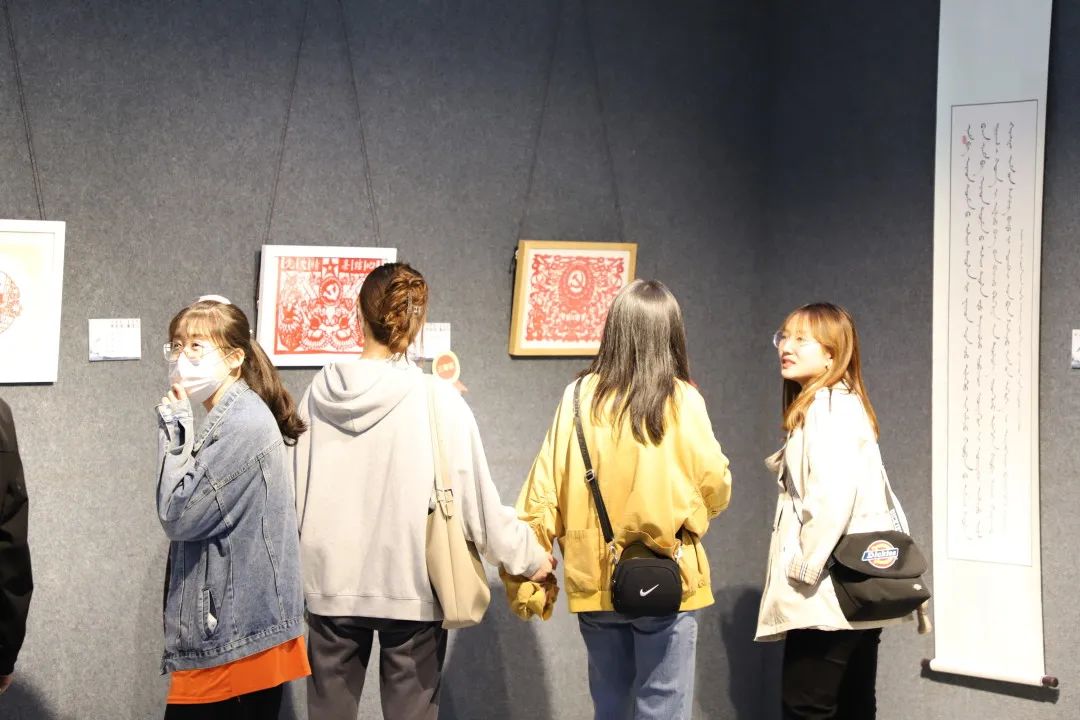 同学们认真参观每一幅作品,从作品中获得感悟和力量。深刻感受到中国共产党的百年光辉历程。这是最生动的党史教育,也是将党史融入生活艺术的最佳方式。