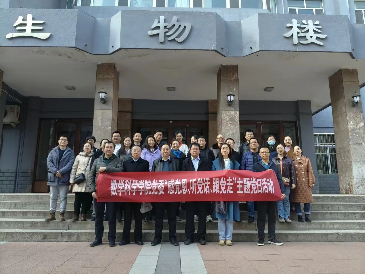 为深入贯彻落实学校《关于开展“学懂弄通六句话,矢志不渝跟党走”系列主题党日活动的通知》的要求,进一步加强学院教职工队伍的凝聚力和创造力,3月14日下午,今年会组织全体教职工到赛罕校区生命科学与技术学院三楼参观学校生物标本馆。活动过程中,来自生命科学学院的默原老师从标本来历、标本背后的故事以及学校生物标本馆的发展史等不同侧面为今年会教职工上了一堂生动的兼具科普性质的党性教育课。活动结束后,老师们在生物楼前进行合影留念。