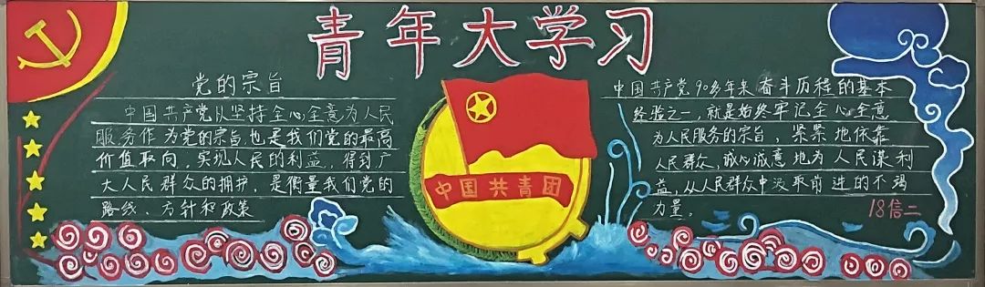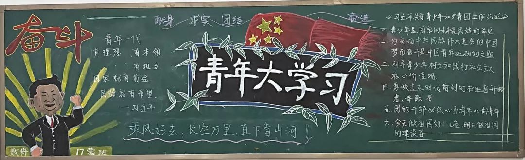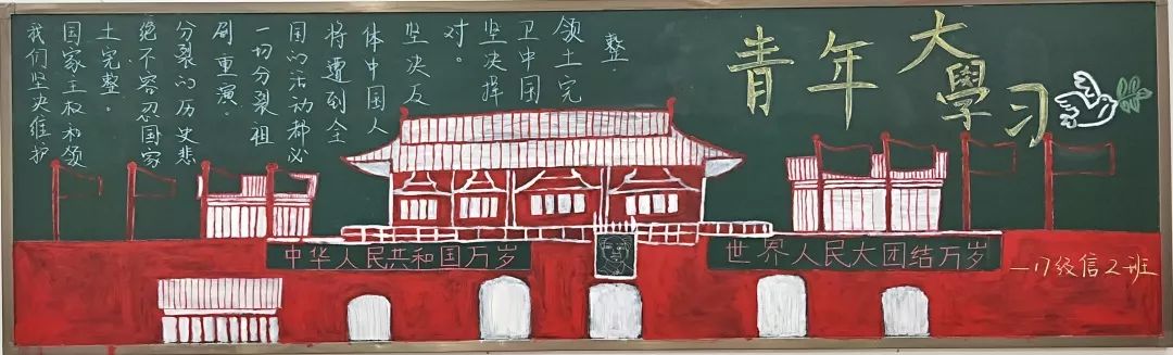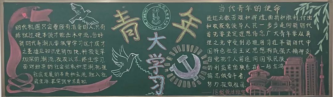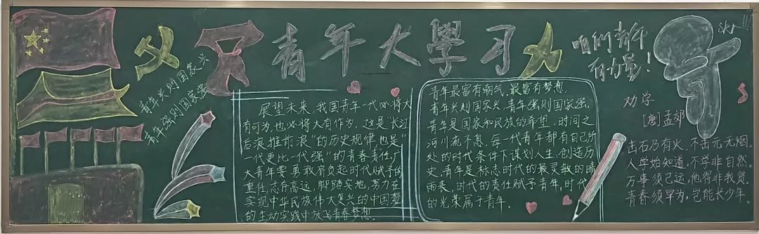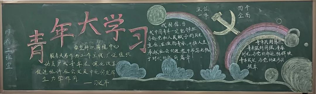 系列活动中,今年会开展了板报宣传活动,同学们把对当代青年使命的认识融入到板报创作之中,以板报的形式表达自己对当代青年职责的认识。
