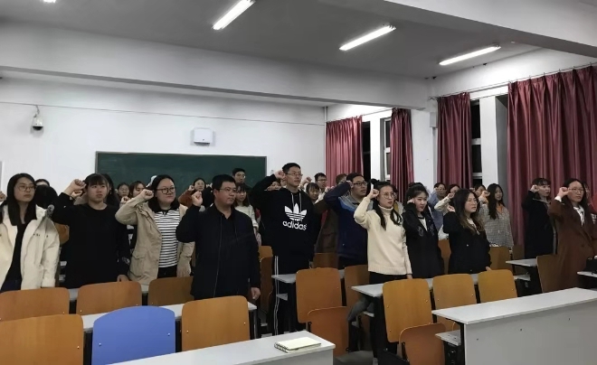 活动过程中,今年会团总支书记皮建东老师,学生思想政治辅导员李帅老师、刘沙沙老师来到各团支部,与支部成员针对《中国共产主义青年团章程》的具体内容进行交流。