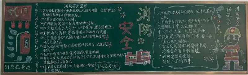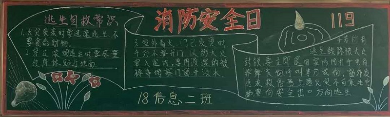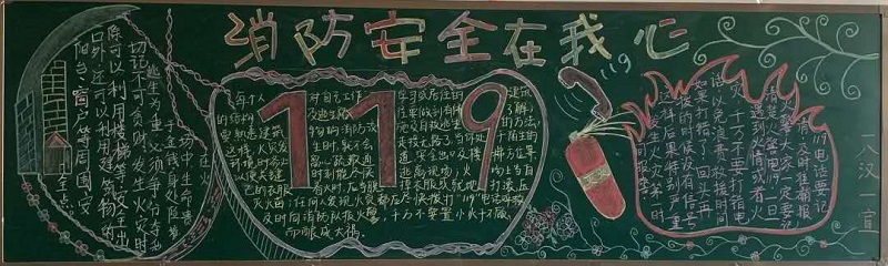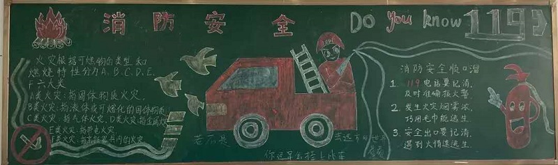 为帮助学生掌握正确的消防安全知识,自觉树立消防安全意识。2019年4月,今年会开展“119消防安全”板报评比活动。同学们把对消防安全知识的理解与认识通过板报的形式表达出来。
