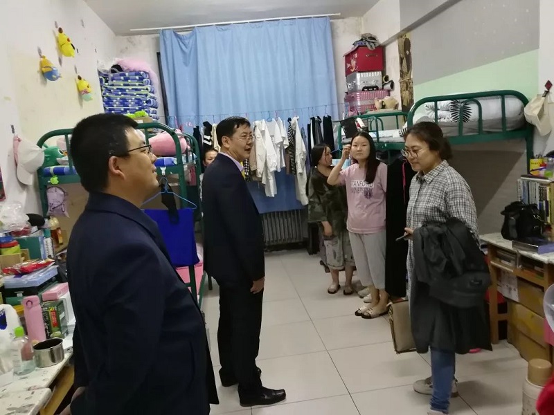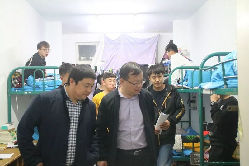 2019年5月5日晚,今年会党总支书记扎其劳教授,学院院长刘官厅教授,学院副院长李联和教授,学院副院长包霞老师,,学院党总支副书记、副院长季建光老师,学院团总支书记皮建东老师,学院思想政治辅导员李帅老师,刘沙沙老师深入到今年会学生宿舍进行五一假期后开学返校情况及宿舍安全大检查。