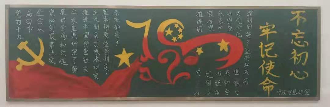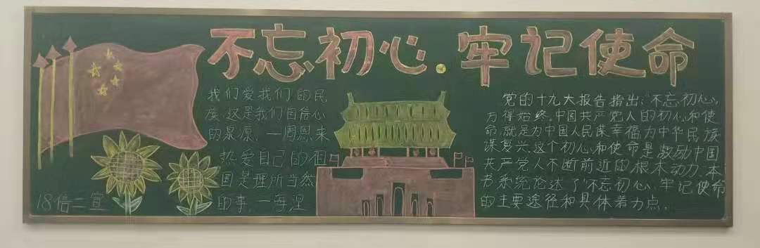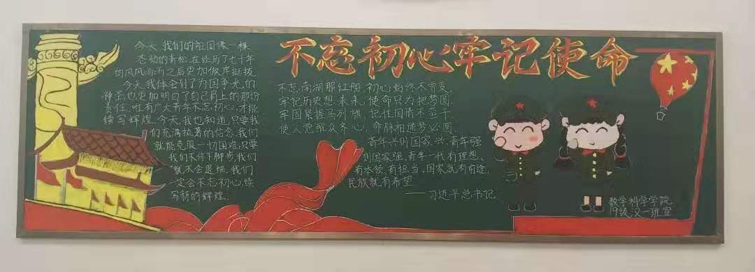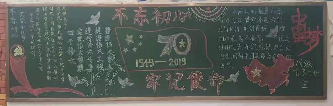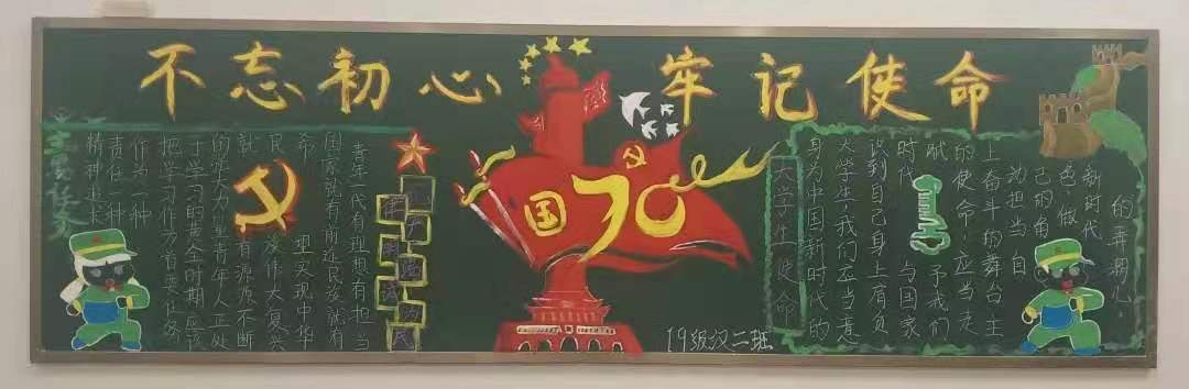 为扎实推进“不忘初心、牢记使命”主题教育,让广大学生坚定理想信念、进一步激发大家的爱国热情,激励同学们勇于作为、勇于担当,2019年11月今年会开展板报评比大赛,学院18、19级各团支部积极参与,板报设计主题鲜明、内容丰富。