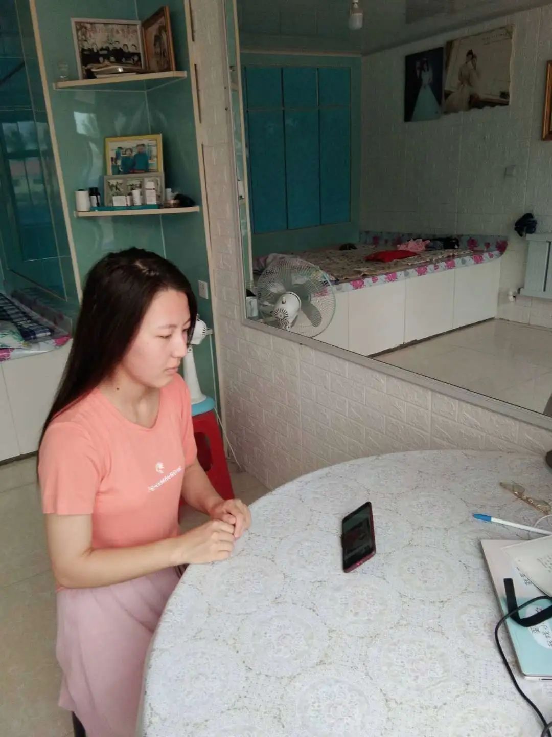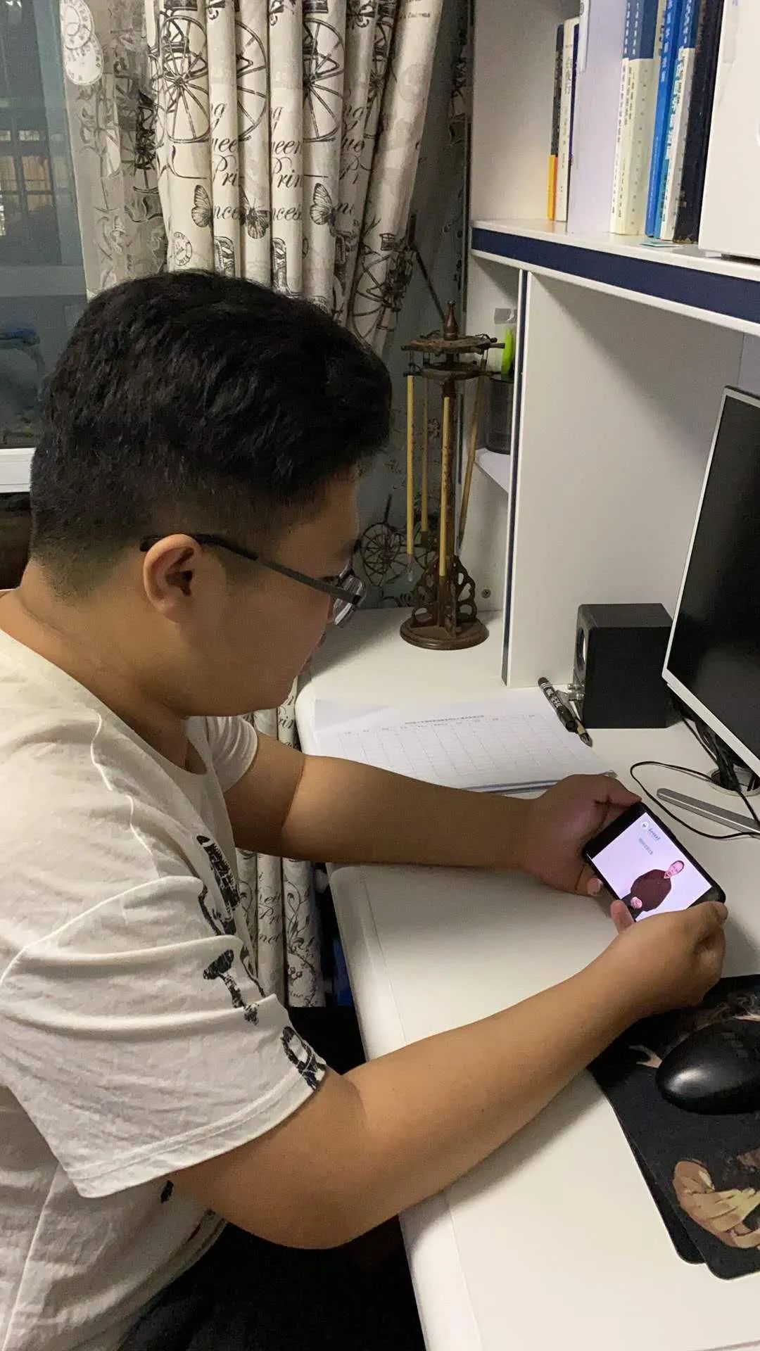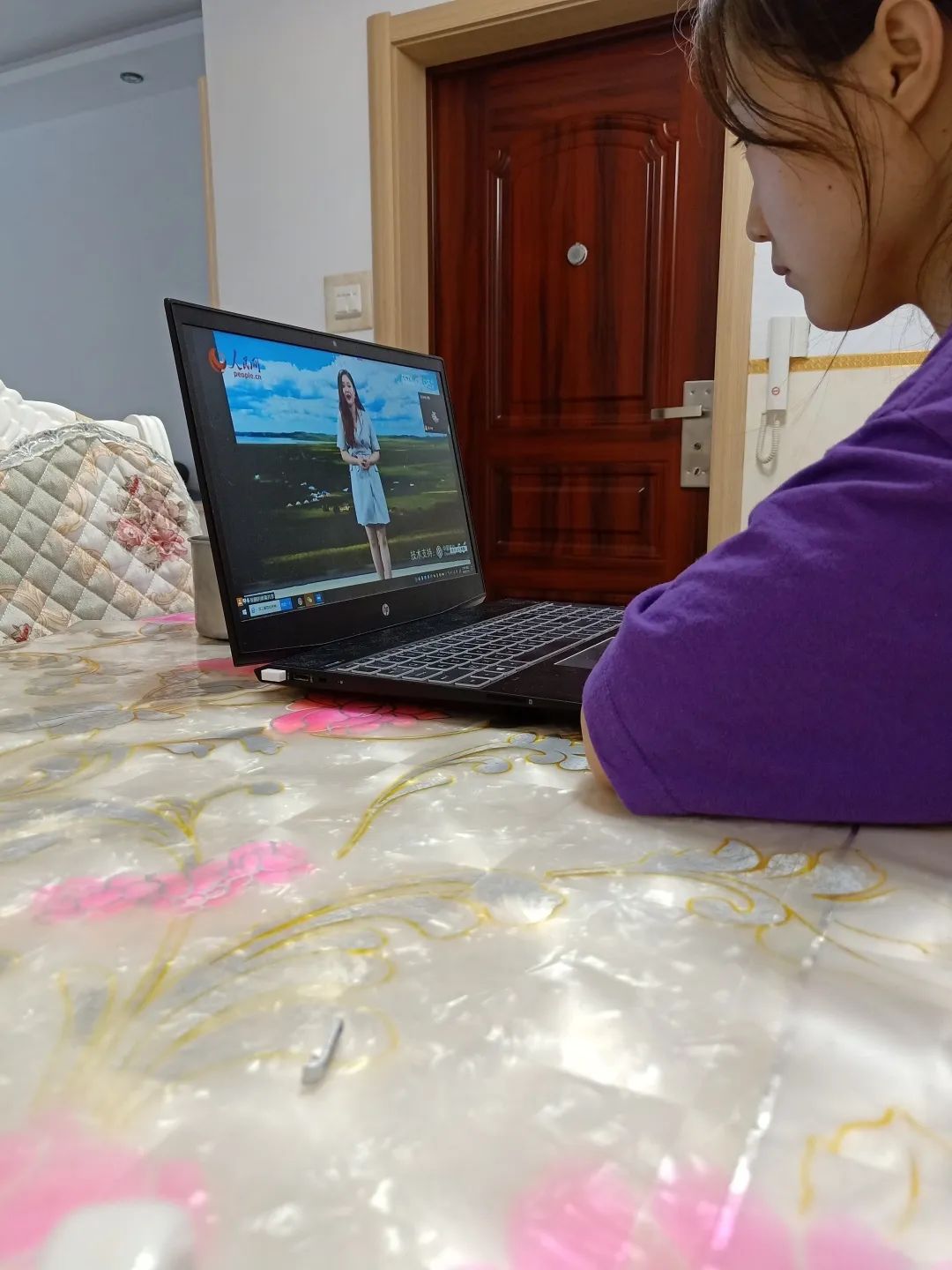 同学们认真观看直播。
