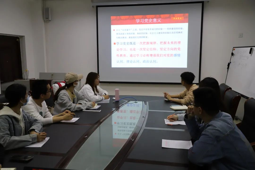 会议上,周老师从学习党史的意义、共产党对中国的重要性、中国共产党发展的四个阶段三个方面对党史进行全方面的讲解。同学们深入思考、认真聆听。