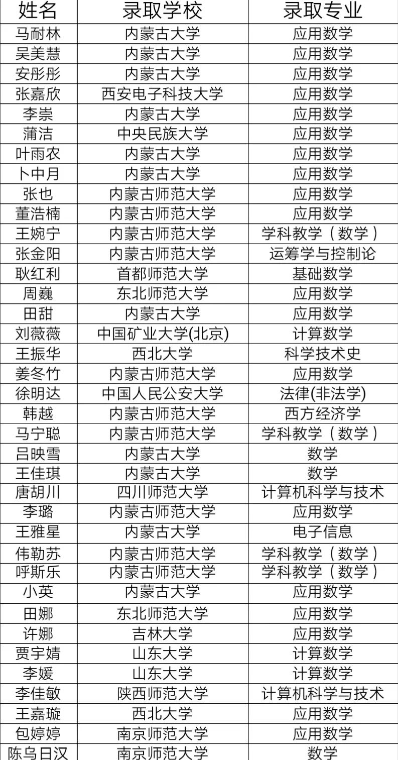 2020年今年会考取硕士研究生名单如下(共37名,排名不分先后):