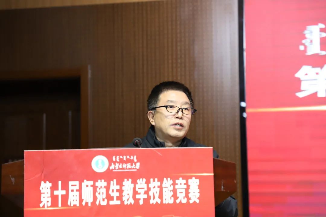 扎其劳院长首先对参加大赛的各位师生表达了感谢,其次赞扬了各位参赛选手的个人素养和精神风貌,并对选手和评委在竞赛中的表现予以肯定,最后扎其劳院长希望同学们在日后的学习生活中重视教学技能的培养,与老师们共同谱写新的篇章。