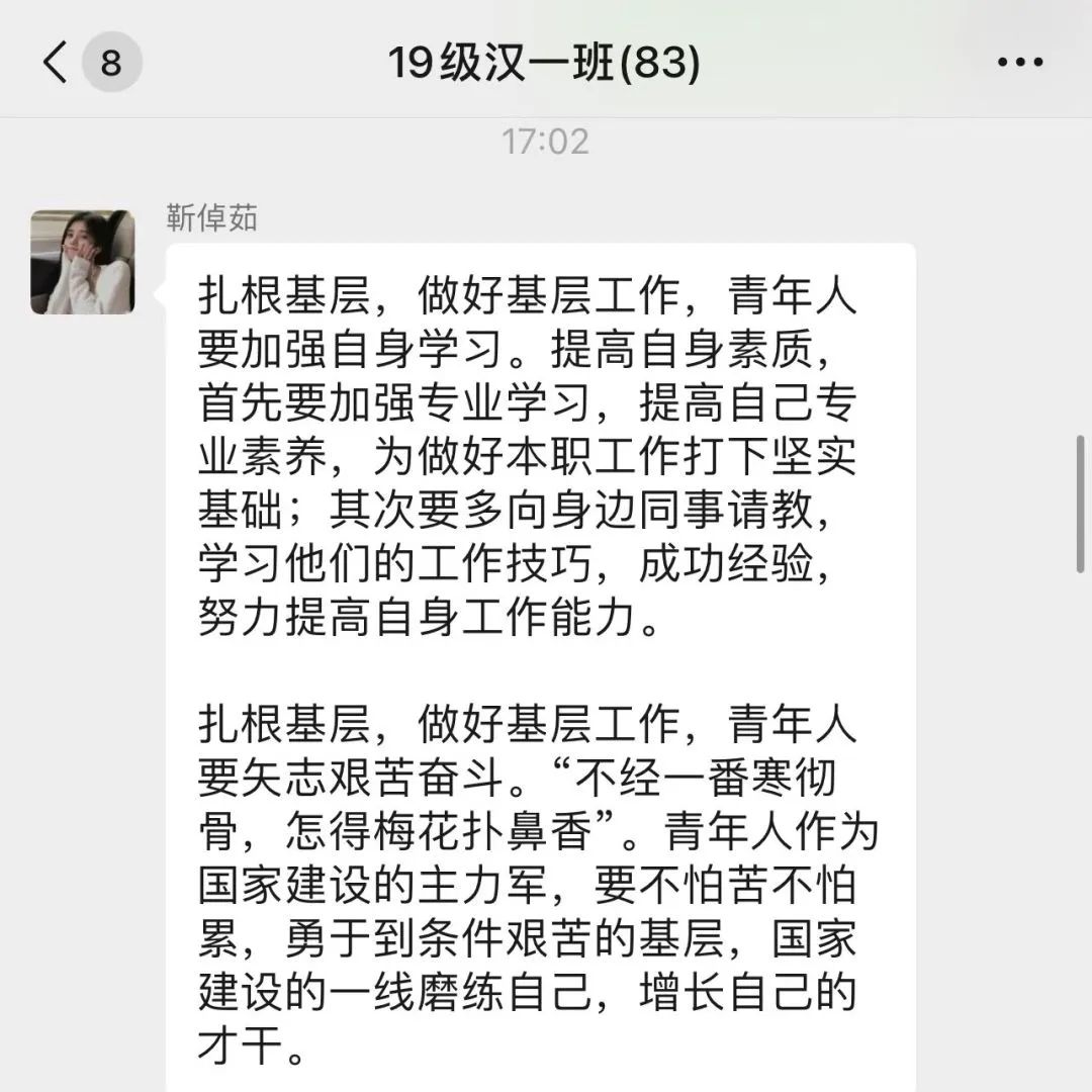 高校毕业生基层就业是其施展才华、成长成才的重要渠道,也是全面推进乡村振兴的重要助力,希望同学们积极投身于基层就业创业,为家乡美丽建设贡献力量!