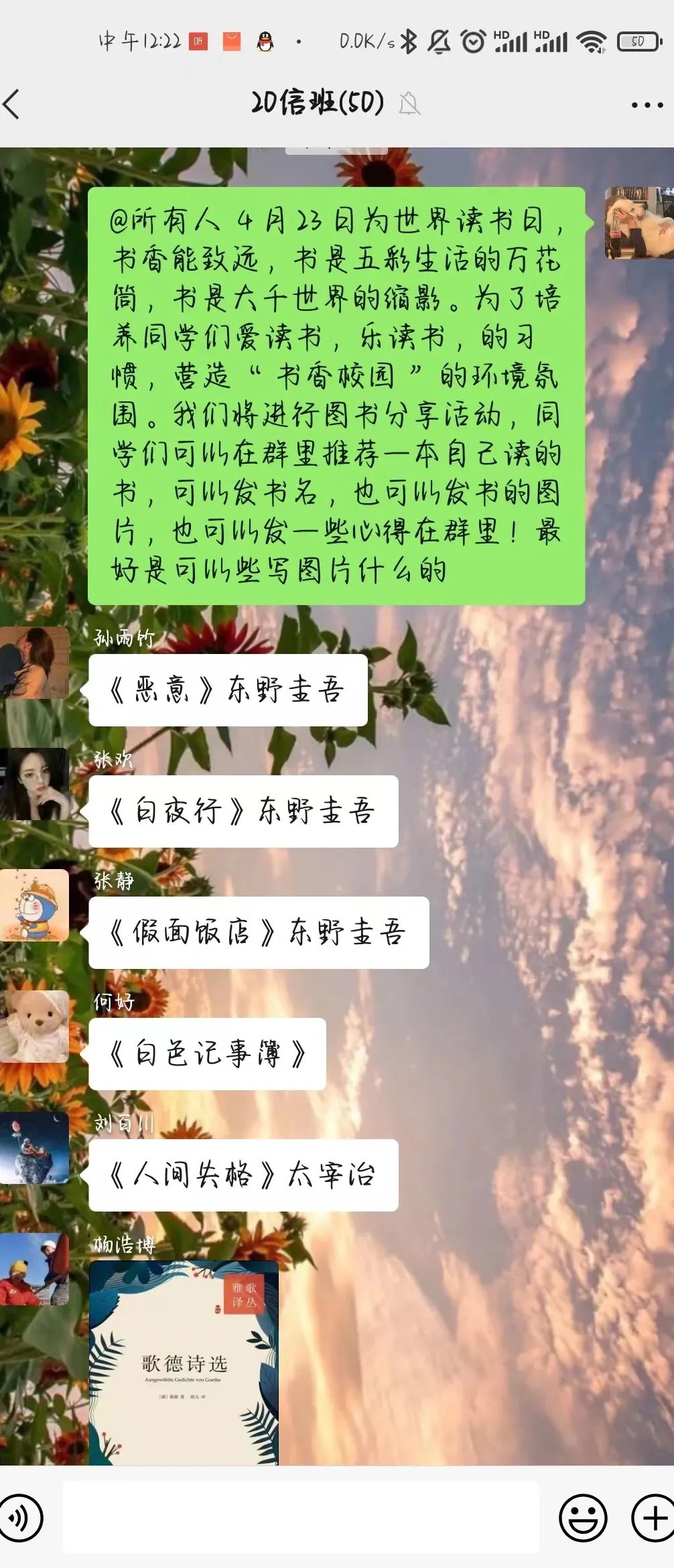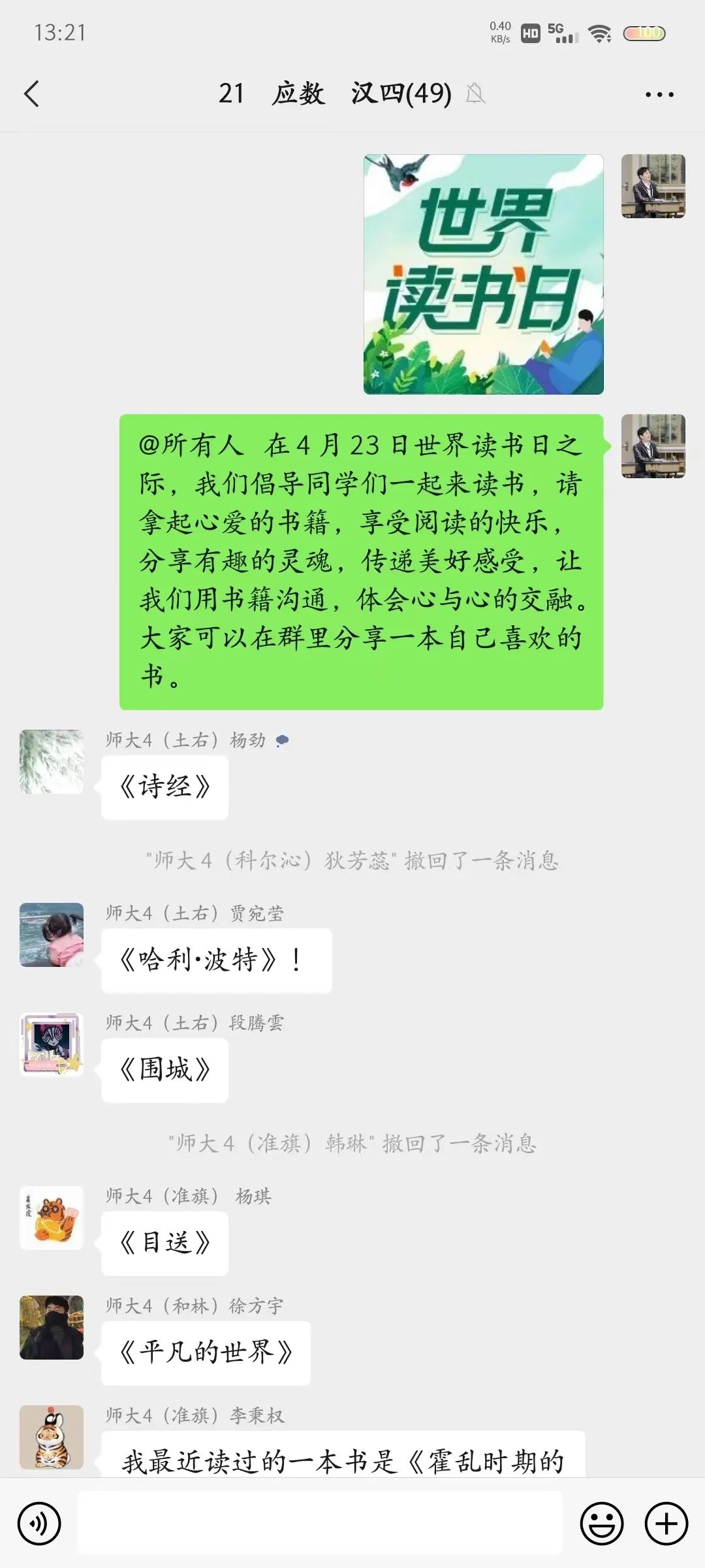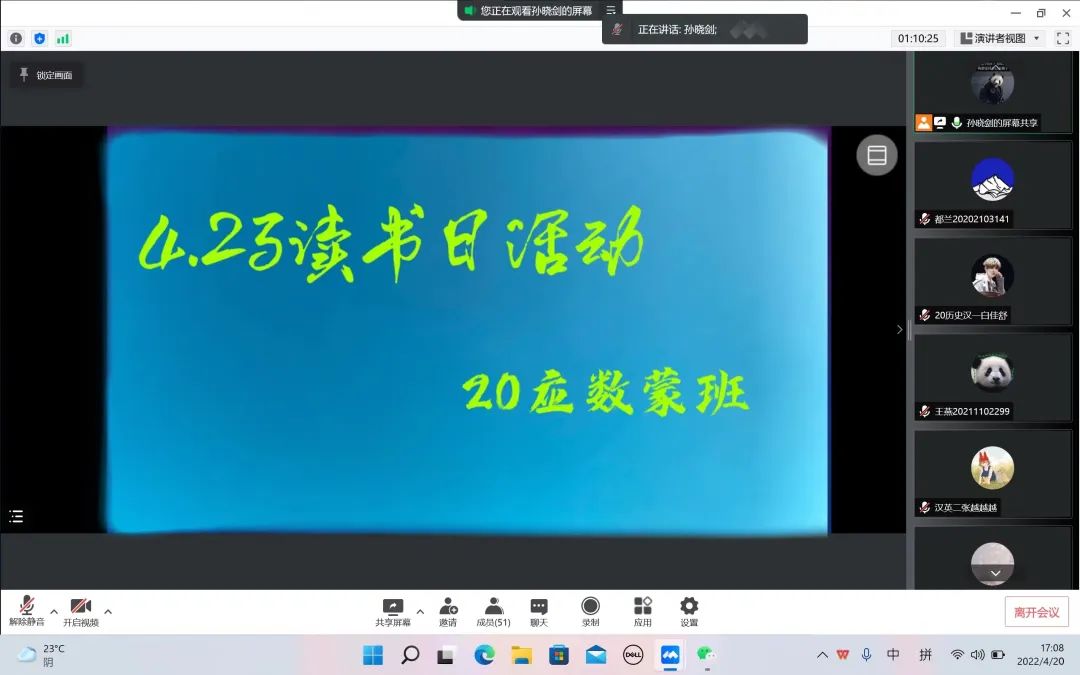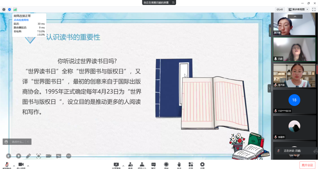 为迎接第27个世界读书日,推进书香校园的建设,今年会开展了“4.23世界读书日主题班会”活动。在班会上,同学们畅所欲言,互相分享自己喜欢的书籍,交流自己的心得体会。