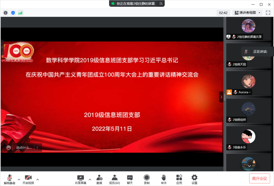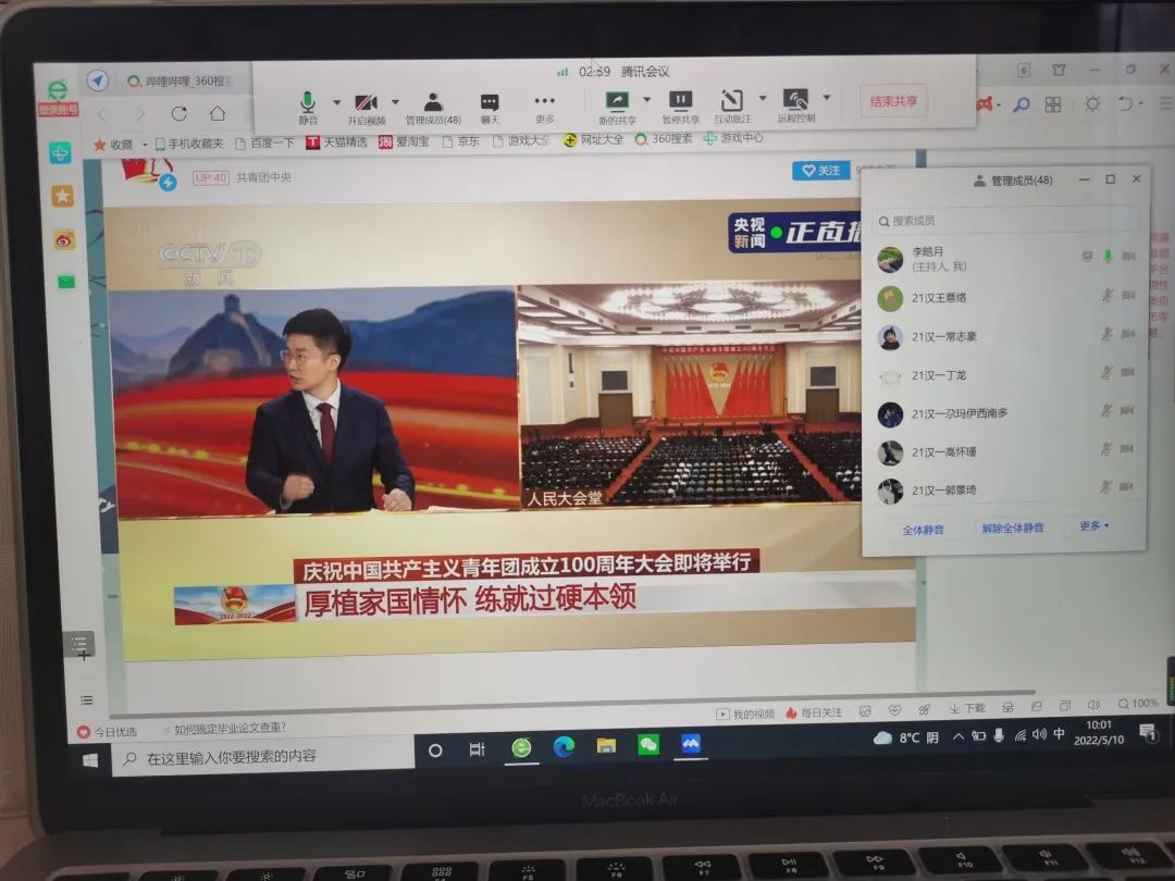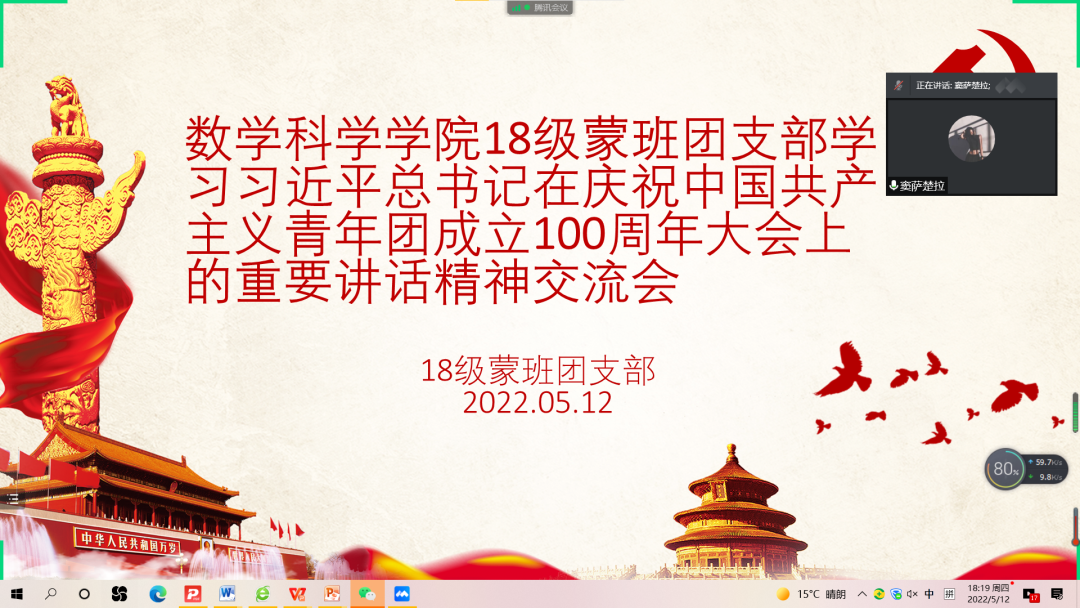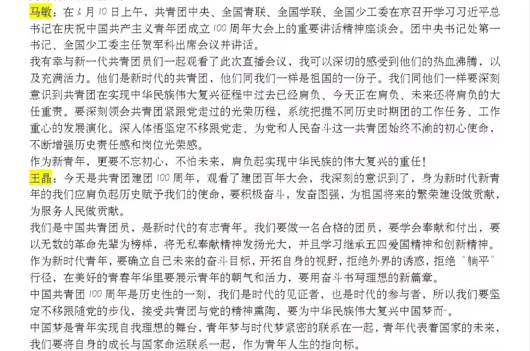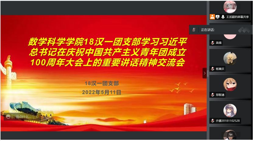 5月10日,庆祝中国共产主义青年团成立 100 周年大会在京隆重举行,习近平总书记发表重要讲话。今年会全体团员青年收看了大会盛况,聆听了总书记的重要讲话。会后,各团支部积极行动,组织开展了学习习近平总书记在庆祝中国共产主义青年团成立100周年大会上的重要讲话精神交流会,分享学习心得,感悟党的关怀,以实际行动为团的百年华诞献礼。