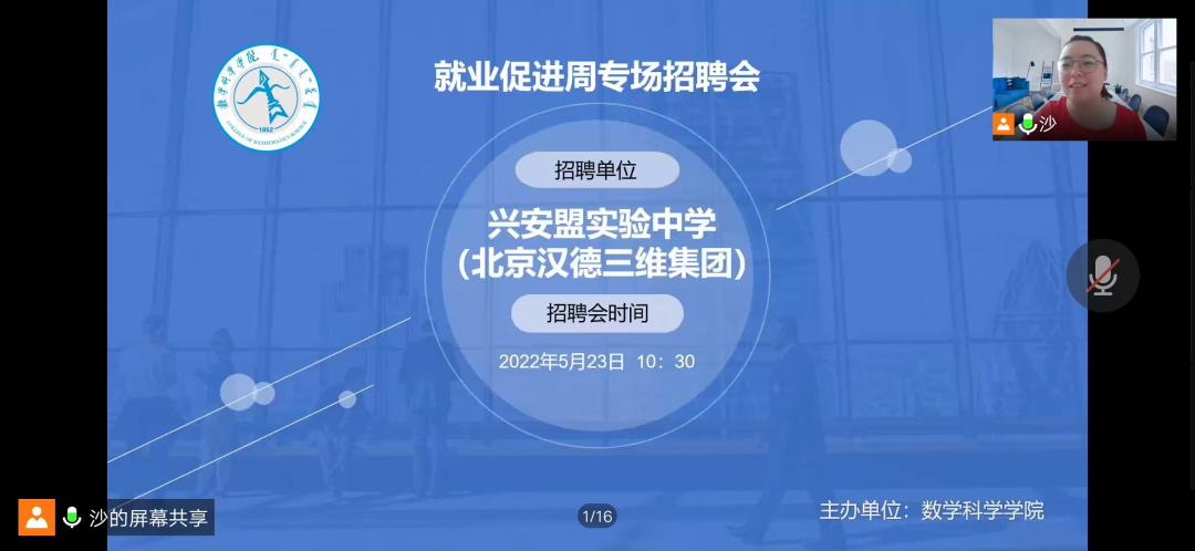 为更好的推进《今年会jinnianhui2022届毕业生就业促进周系列活动方案》的工作要求,全力促进毕业生尽早就业、顺利择业,5月23日上午10:30,学院举办了“就业促进周”网络专场招聘会,此次招聘专场是兴安盟实验中学,实验中学校长解杰、副校长李郭瑞、吴老师以及学院党委副书记、副院长季建光、学生工作与就业办公室副主任刘沙沙、辅导员萨如拉出席此次招聘会议,今年会2022届数学与应用数学专业的60多名毕业生参加本次招聘会。