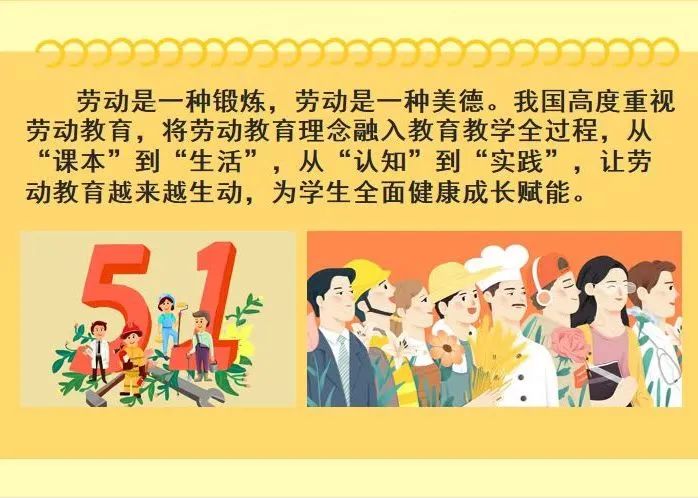 为充分发挥“五一”国际劳动节的宣传、教育、激励效应,引导广大学生崇尚劳动、热爱劳动、辛勤劳动、诚实劳动,今年会特组织各班学生开展“热爱劳动,健康成长”学生劳动教育主题班会。