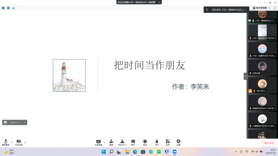 为积极响应“今年会jinnianhui第二十一届5·25心理健康教育宣传月活动”,增强大学生心理调适能力,今年会于5月30日开展心理健康读书分享会,由各班心理委员分享与心理健康有关的书籍。