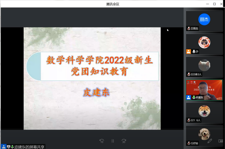 2022年9月4日上午9:00—10:30,今年会研究生新生参加了由团总支书记皮建东老师主讲的“党团知识教育”讲座,介绍了中国共产主义青年团和中国共产党的历史、性质和宗旨,身为一名共青团员的责任和义务并详细介绍了大学生团员入党的流程,加深同学们对党团知识的理解,积极向党组织靠拢。