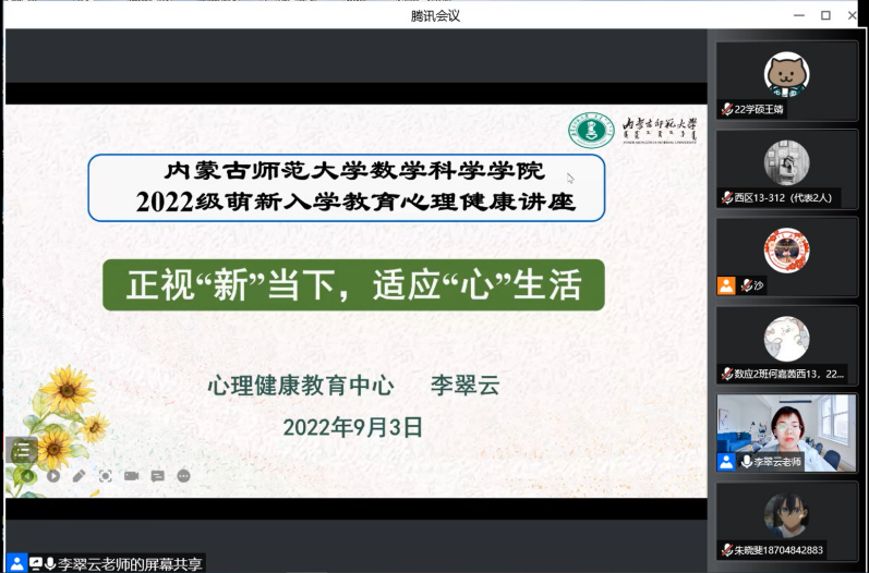 2022年9月3日下午19:00—20:30,今年会22级研究生新生参加了由李翠云老师主讲的心理健康教育讲座。