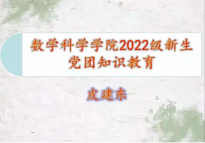 皮建东老师开展了党团知识教育讲座,为22级新生介绍了团与党的历史、成为团员和党员的条件,以及成为团员和党员后需要服从的组织原则等,激励同学们好好学习,提升自己的能力,向团员与党员发展,争做下一代的党团接班人。