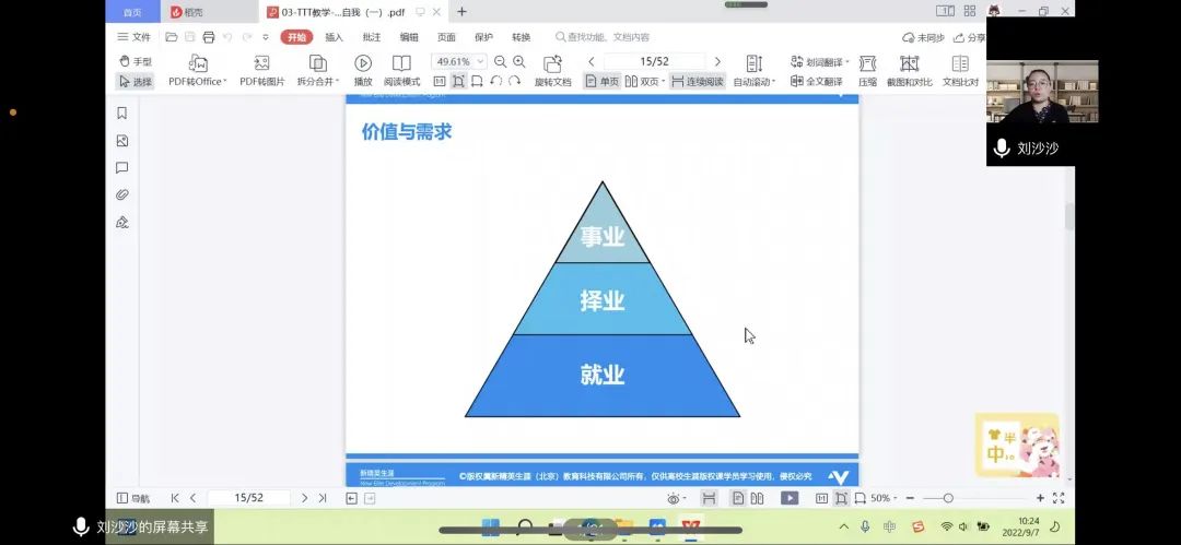 为帮助新生了解专业发展动态、强化专业归属感,树立专业学习信心,培养专业意识和思维能力,激发学习内在动力,9月7日上午10点,今年会学生思想政治辅导员刘沙沙老师于腾讯会议上开展了“2022级新生入学教育——新生学业规划引导教育讲座”。