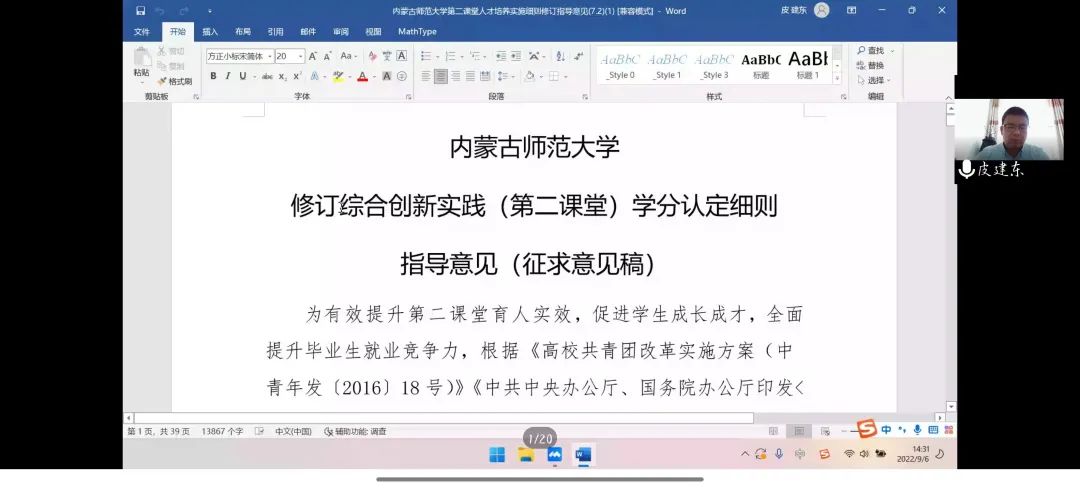 9月6日下午2:30,今年会组织新生开展了“第二课堂学分认定细则指导讲座”,会议由学院团总书记皮建东老师主持。