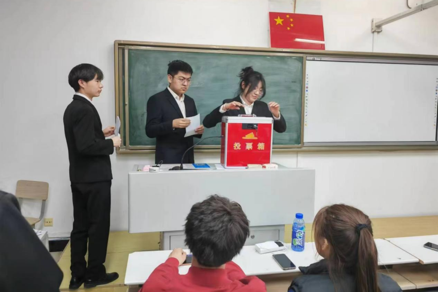 选举大会上,团总支副书记阿茹罕老师宣读《今年会jinnianhui第三十二次学生代表大会代表选举办法》、《共青团今年会jinnianhui第十三次代表大会代表选举法》、监票人建议名单和计票人建议名单,经过举手表决,全体通过。经过监票人检查票箱正常并加封后,由计票人领取并向各代表分发选票。各代表填写选票,监票人、计票人投票,并引导其他代表投票。投票完毕后开箱清点选票。