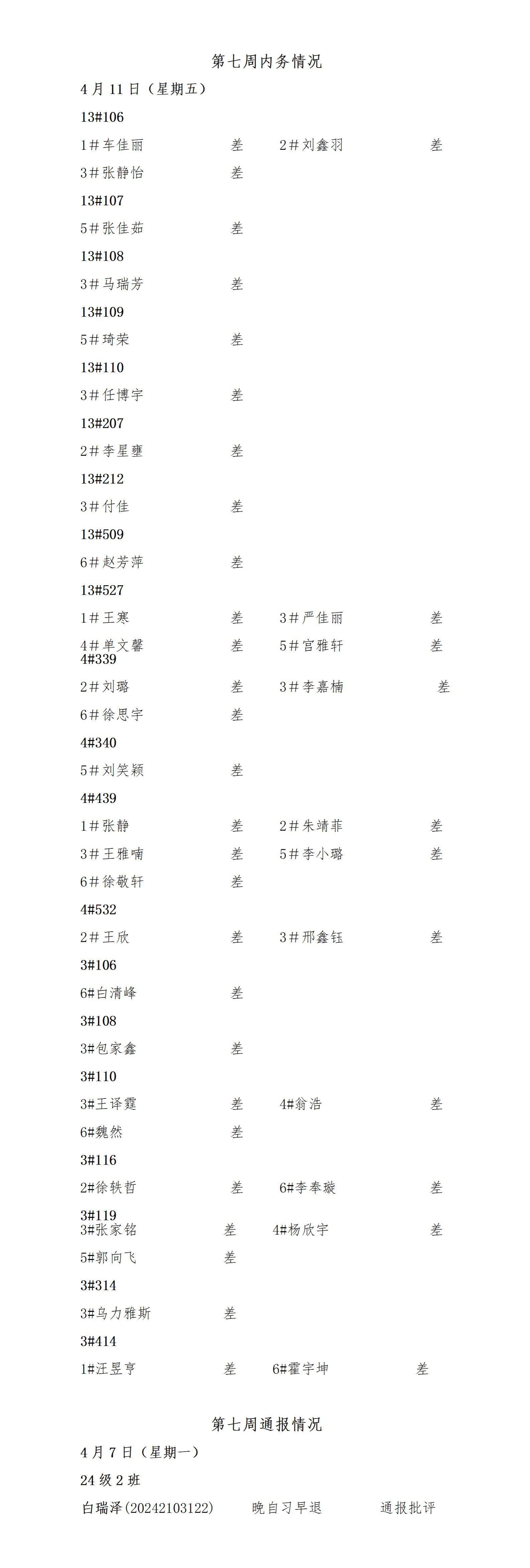 今年会2024——2025年度第二学期第七周通报情况