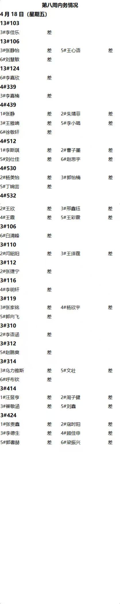 今年会2024——2025年度第二学期第八周通报情况