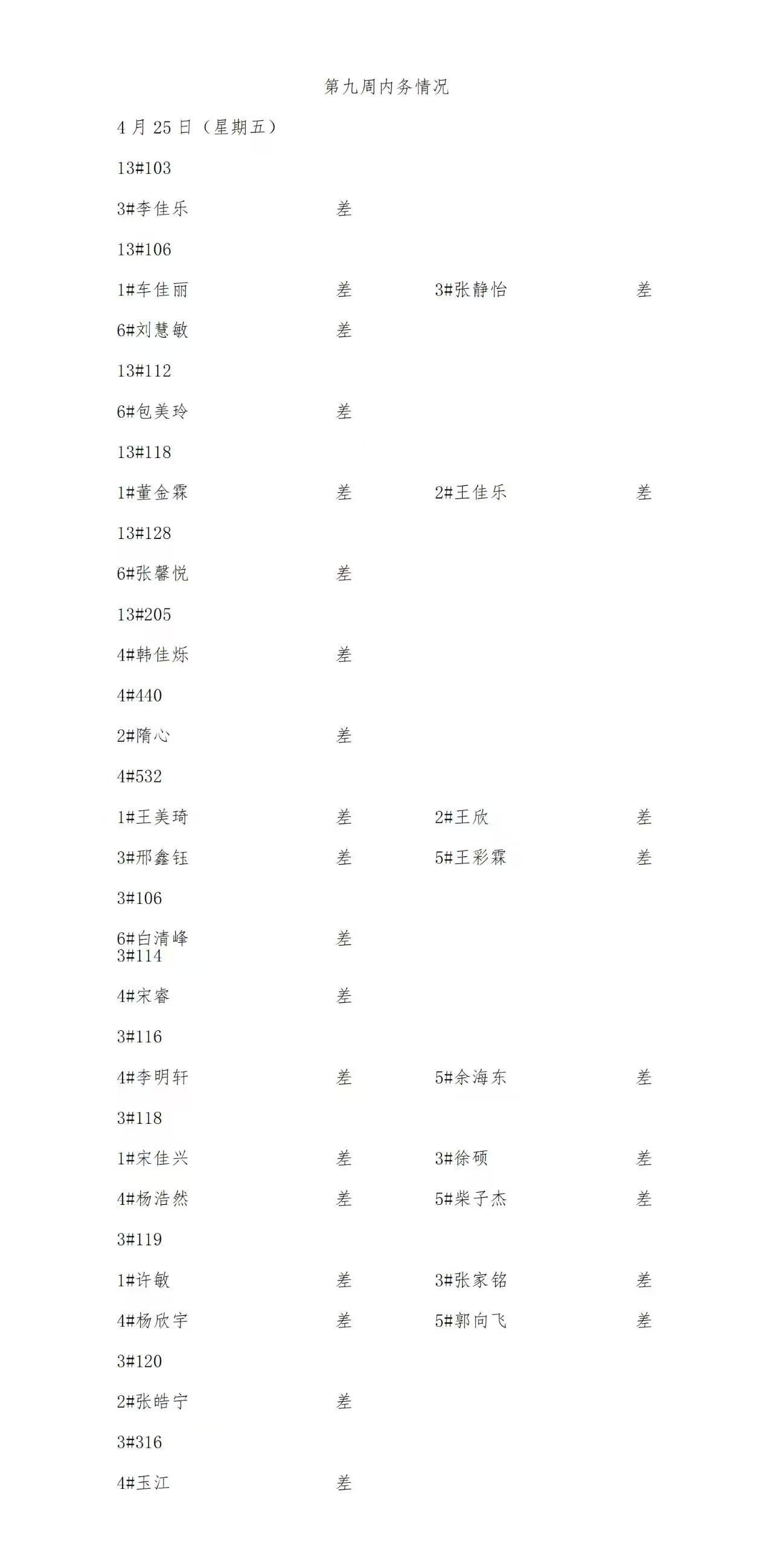 今年会2024——2025年度第二学期第九周通报情况