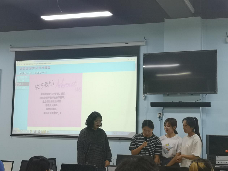 实习结束前会分好小组,每组都需要根据一周所学做出一个项目,进行答辩,答辩期间每位同学需要在期间说出哪些功能和想法是自己想到并实施出来的,尽管时间较短,但答辩期间很多学生做出的网页都非常具有创意,其中一些身在学生会的同学做了今年会学风建设部系统,他们认为有了这样的系统能够更加方便今后的学生会管理工作,有的同学针对自己喜欢的东西也分别设计出了相应的网页,例如球鞋官网,化妆品网站,班级网站……