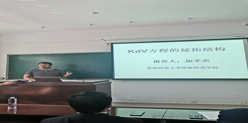 加羊杰博士报告题目为“KdV方程Lax对的推导”,详细介绍了利用外微分形式系统和Lie代数表示理论推导求解非线性波方程Lax对的延拓结构理论,并指出该方法是构造非线性波方程Lax对的系统的最有效的方法。