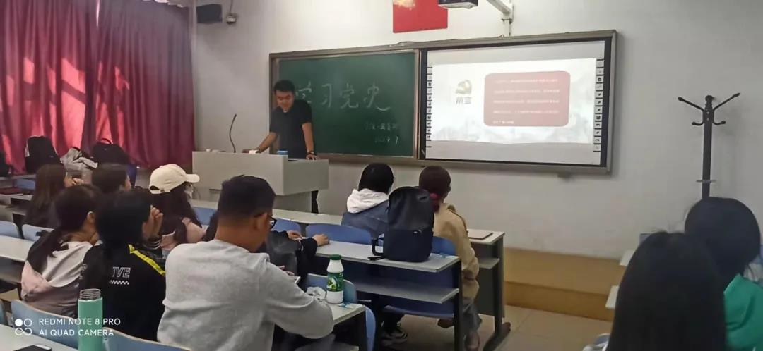 班会中3位预备党员同学分享了学党史的感悟,并鼓励同学们积极入党,在日常生活中学习党史,理解党的光辉历史、感悟党的初心使命。