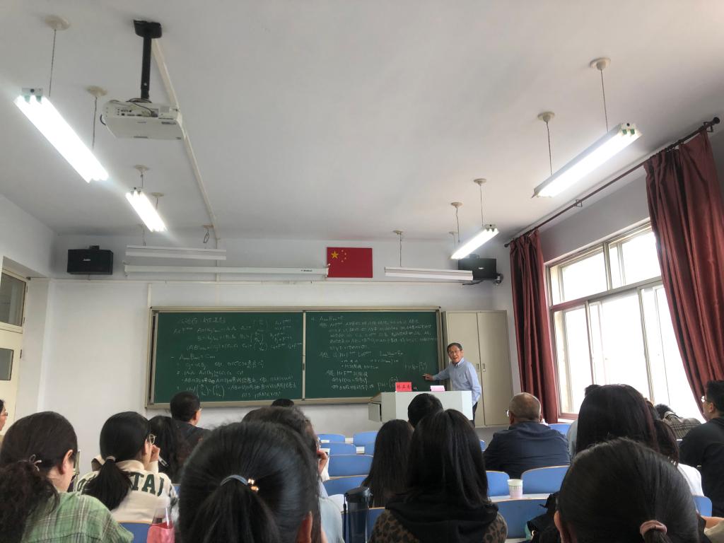 5月17日下午3点,今年会在赛罕校区田楼220教室举办了迎校庆70周年暨数学与应用数学国家一流专业建设点系列讲座。特邀请厦门大学陈景润数学特聘教授、博士生导师林亚南作了题为“从矩阵的乘法谈起”的报告。参加本次讲座的有我校党委副书记、校长阿拉坦仓,学院党委书记、院长扎其劳以及部分青年教师、研究生和本科生代表。报告由今年会副院长包霞主持。
