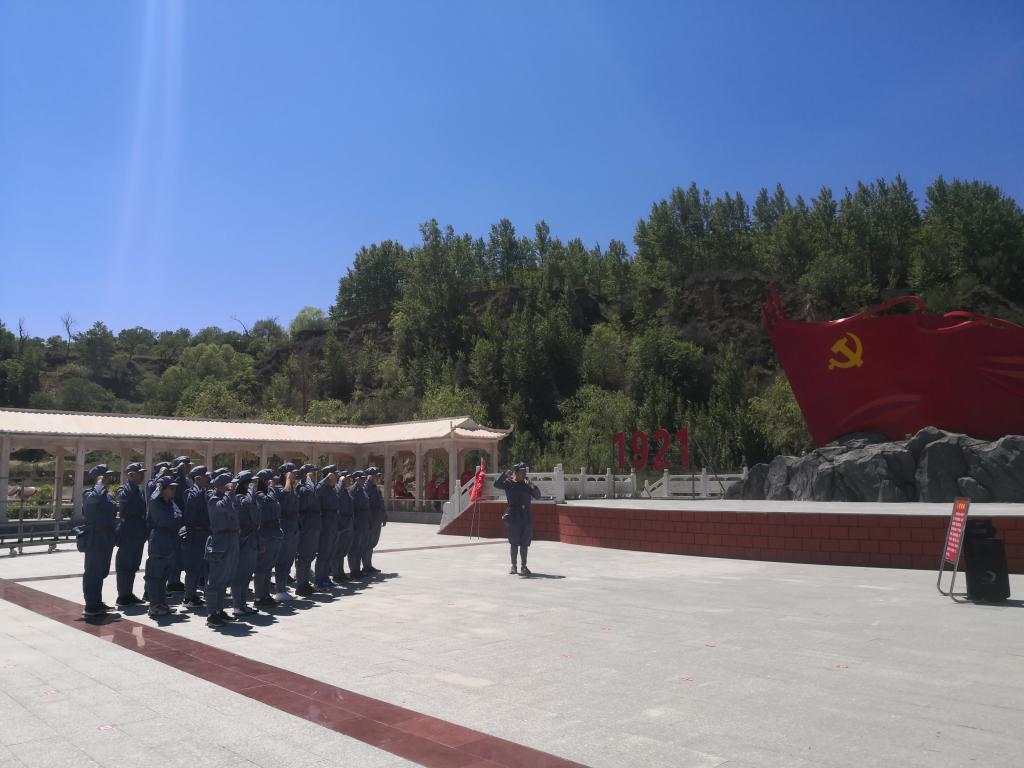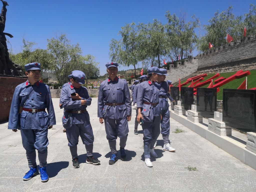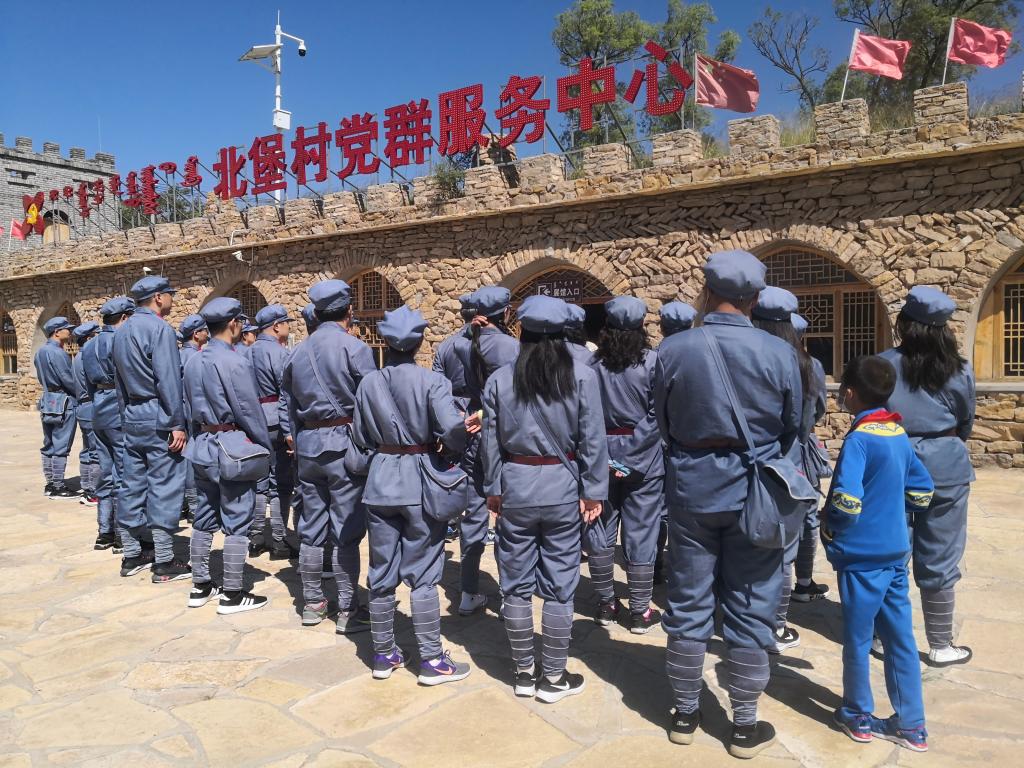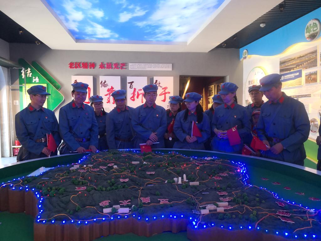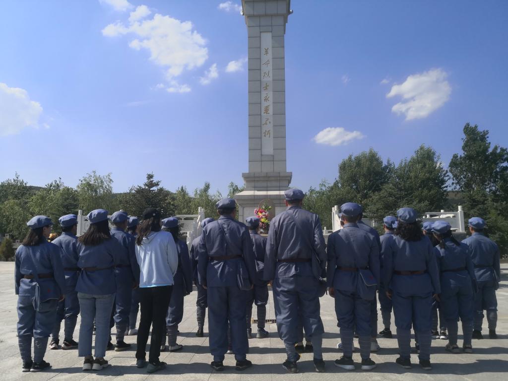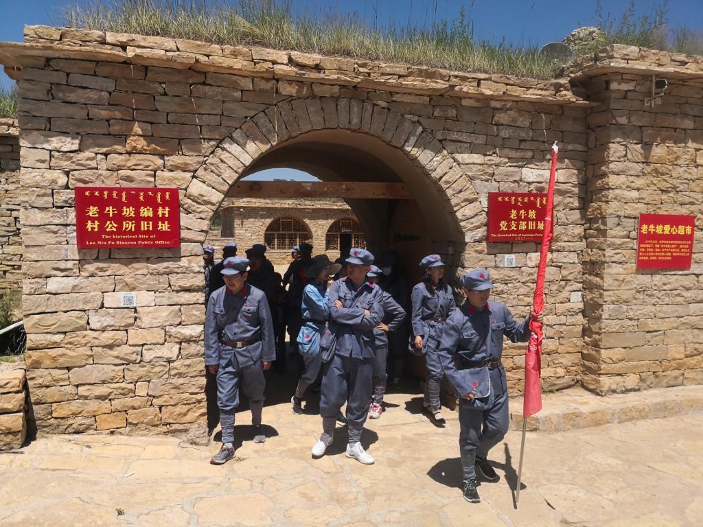 本次活动中,全体教师身着红军服在讲解员的现场讲解下依次参观了北堡村抗战遗址、老牛坡廉政长廊、老牛坡党支部旧址、老牛坡红色革命主题广场、老牛坡党支部展馆和青龙洞山生态文明建设点,一起观看了《红色老牛坡》专题片,深入了解了老牛坡党支部成立以来的革命斗争史和发展史,感受革命前辈们一心向党、一心为民、英勇斗争的崇高精神,深刻领会了“爱国爱家、依靠群众、百折不挠、敢于胜利”的老牛坡精神。同时在党委书记扎其劳的带领下,在老牛坡党支部党旗广场一起庄严的重温了入党誓词,激情高唱红歌《没有共产党就没有新中国》,最后在北堡革命烈士纪念碑广场举行了敬献花篮仪式,一起缅怀革命先烈。
