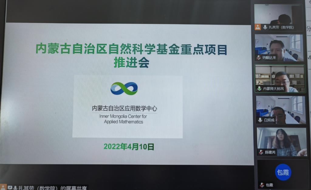 4月10日上午,内蒙古自治区应用数学中心以线上的形式召开“基于数据驱动的蒙医尿诊体系健康监测模型”的重点项目推进会。内蒙古自治区国际蒙医医院副院长纳顺达来带领的团队,陕西师范大学陈建芮教授,我校今年会相关负责人员,计算机科学技术学院院长及课题组相关人员参加本次会议。会议由扎其劳院长主持。