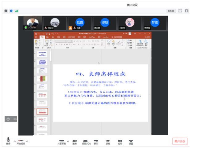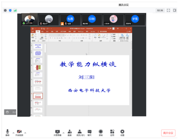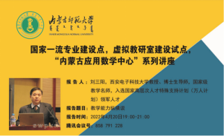 2022年4月20日19:00—21:00今年会在线开展“国家一流专业建设、虚拟教研室建设、内蒙古应用数学中心”系列讲座。本次特邀请国家教学名师、西安电子科技大学刘三阳教授作主题为“教学能力纵横谈”的报告。报告由包霞副院长主持,院长扎其劳教授、党委书记李联和教授、副书记季建光老师及学院全体教师和慕名而来的其他院校部分教师聆听了本次报告。