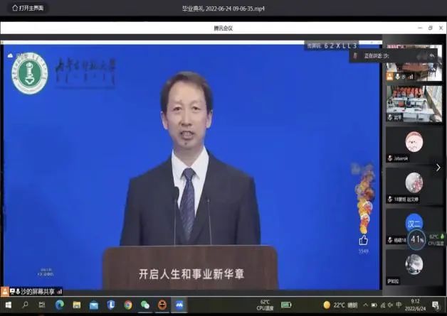 为进一步增强毕业生荣誉感、归属感,结合学校毕业生返校实际,今年会于6月24日在线上隆重召开了2022届学生毕业典礼。学院领导、教师代表、学院行政老师、研究生导师、毕业班班主任以及2022届全体毕业生同聚线上、共话毕业、传递祝福。学院团总支书记皮建东主持毕业典礼。