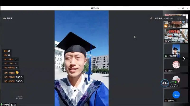 【研究生毕业生代表白杰在学院楼】
