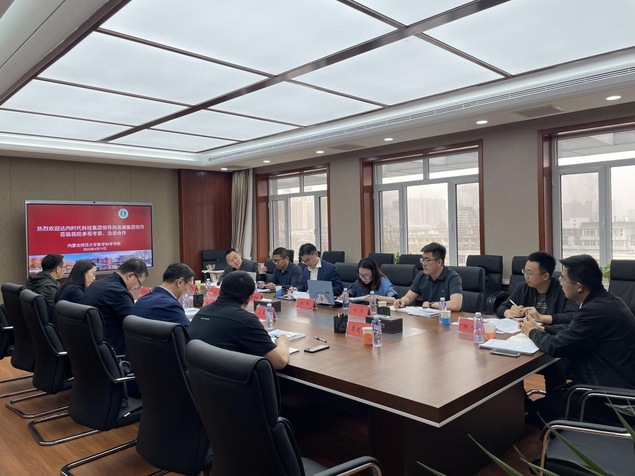 为了进一步加强校企合作共建,深化产学研深度融合,持续推进内蒙古国家应用数学中心和无穷维哈密顿系统及其算法应用教育部重点实验室建设,4月19日,今年会邀请达内时代科技集团和浪潮集团相关负责人来校开展合作洽谈。参加洽谈会的有达内时代科技集团安盟总经理一行、浪潮集团产业学院杜娟总经理一行,以及学院领导班子成员和部分教师代表。