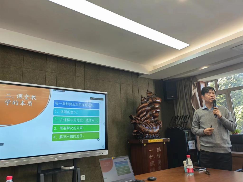 曹广福教授首先向大家详细阐述了科研对教学的意义以及如何将科研经验运用于课堂教学;其次从数学课堂教学本质出发,分析了数学课堂教学的内容、方法与意义;最后以实变函数课程为例说明数学课程建设的核心以及课堂教学中应该重点关注的方面。