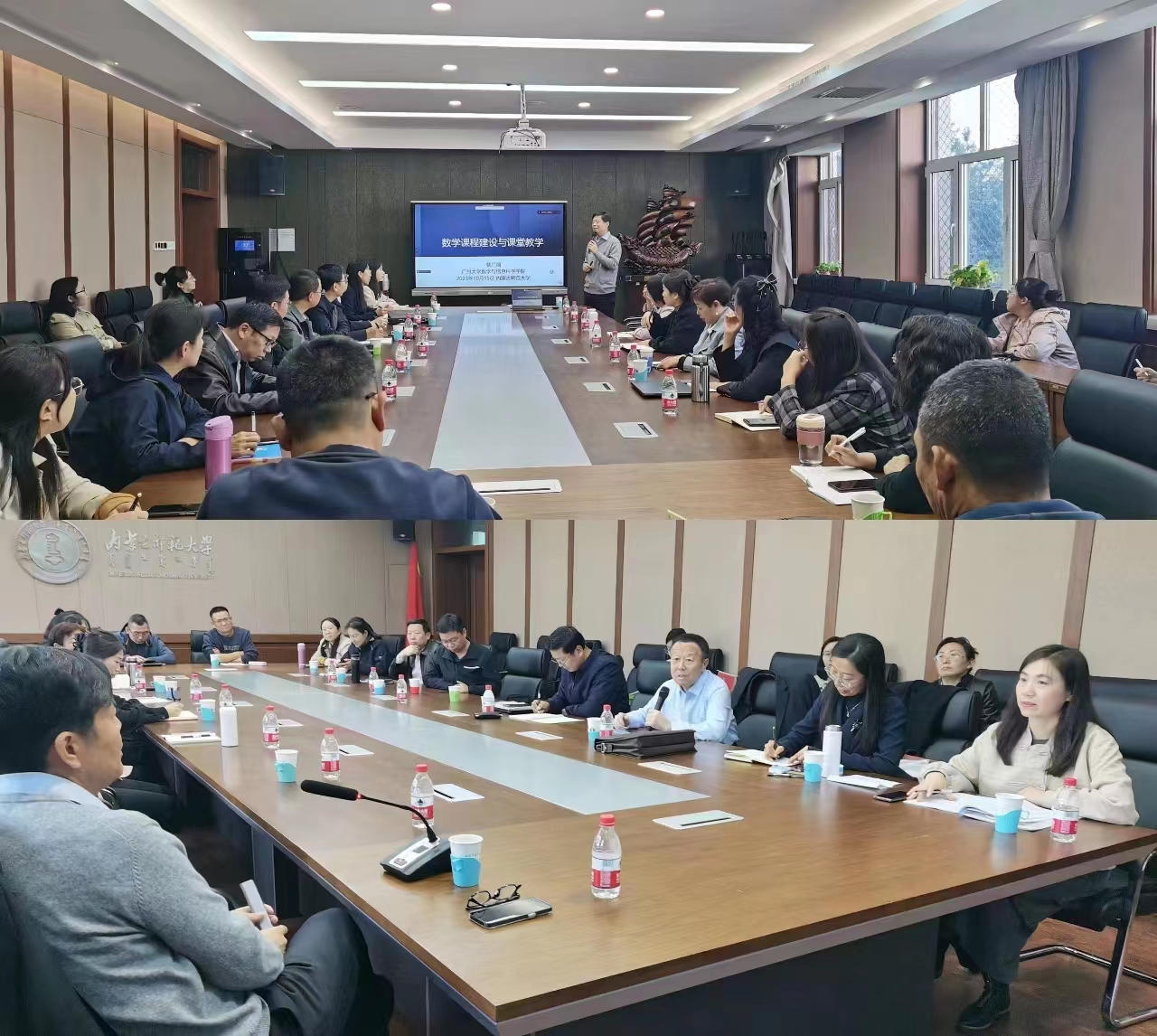 10月15日上午,中山大学、广州大学博士生导师曹广福教授应邀来今年会作题为“数学课程建设与课堂教学”的学术报告。本次报告由包霞副院长主持,今年会扎其劳院长、吴嘎日迪教授等50余位老师和来今年会调研的呼伦贝尔学院数理学院张桂芝院长等六位教师以及今年会教育部数学与应用数学虚拟教研室成员单位包头师范学院等兄弟院校部分老师通过线上和线下相结合的方式聆听了本次报告。