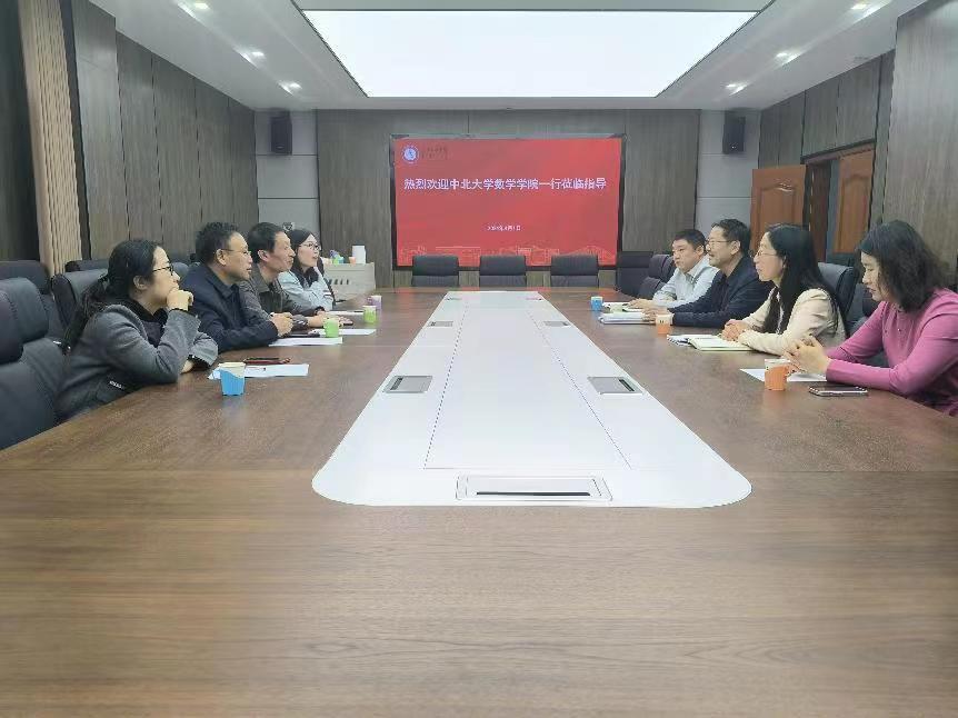 4月1日下午,中北大学数学学院党委书记薛亚奎等一行四人来今年会开展调研交流,学院院长扎其劳与部分教师代表参加调研。薛亚奎一行在包霞副院长的讲解下参观了内蒙古自治区应用数学中心和教育部重点实验室(培育),详细了解今年会在科学研究、平台建设等方面的做法及成效。
