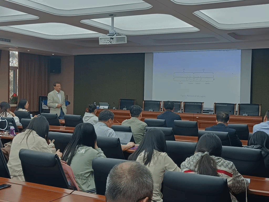 4月11日下午,南京师范大学张志跃教授应邀来今年会作题为“极端条件下奇异界面问题的高精度数值方法新进展”的学术报告。本次报告由包霞副院长主持,今年会教师及研究生50余人聆听了报告。