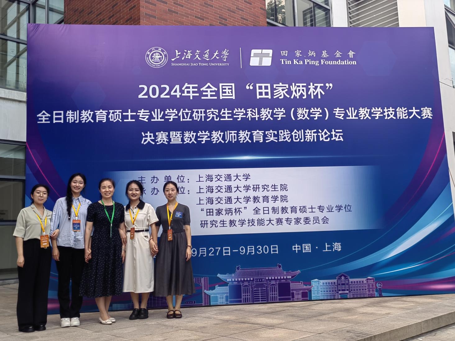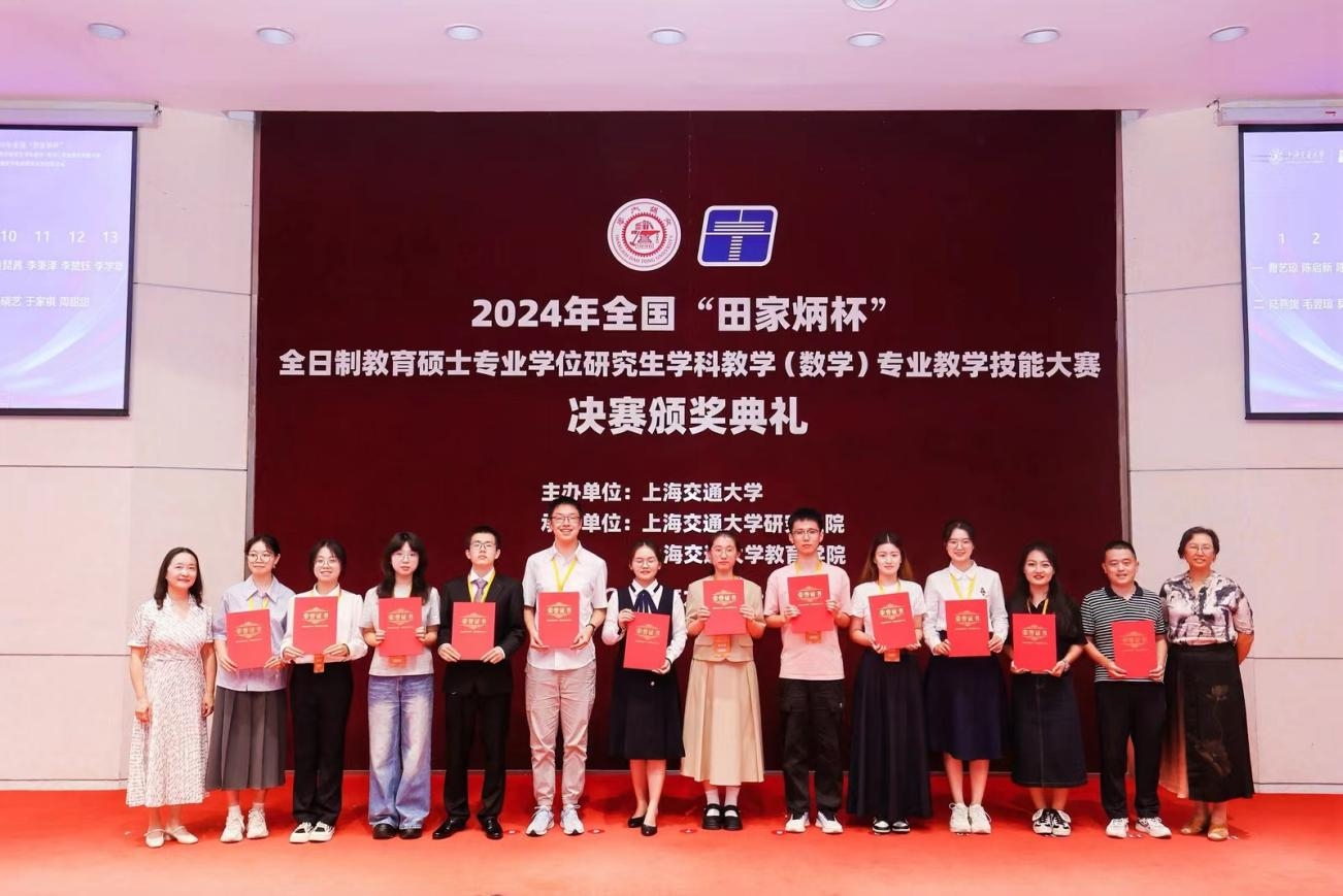由全国教育专业学位研究生教育指导委员会、田家炳基金会冠名、上海交通大学主办的全国“田家炳杯”全日制教育硕士专业学位研究生学科教学(数学)专业教学技能大赛决赛暨数学教师教育实践创新论坛于2024年9月27-30日在上海交通大学举办。